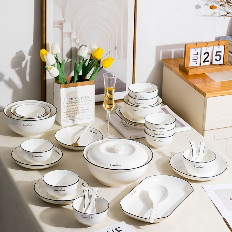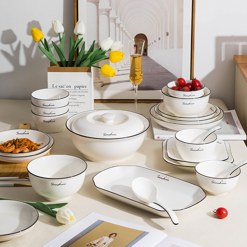 高级感碗碟套装家用2025新款简约碗盘乔迁碗筷陶瓷釉下彩餐具盘子