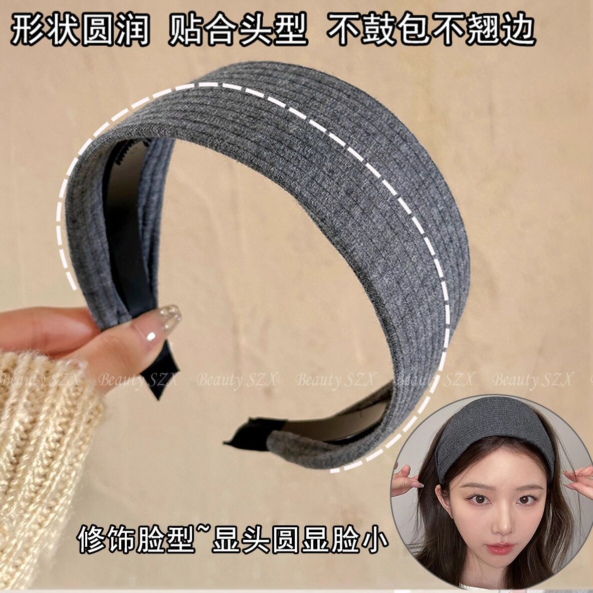 易梦玲同款灰色宽边发箍女2025新款发卡捆高颅顶针织头箍发带发饰