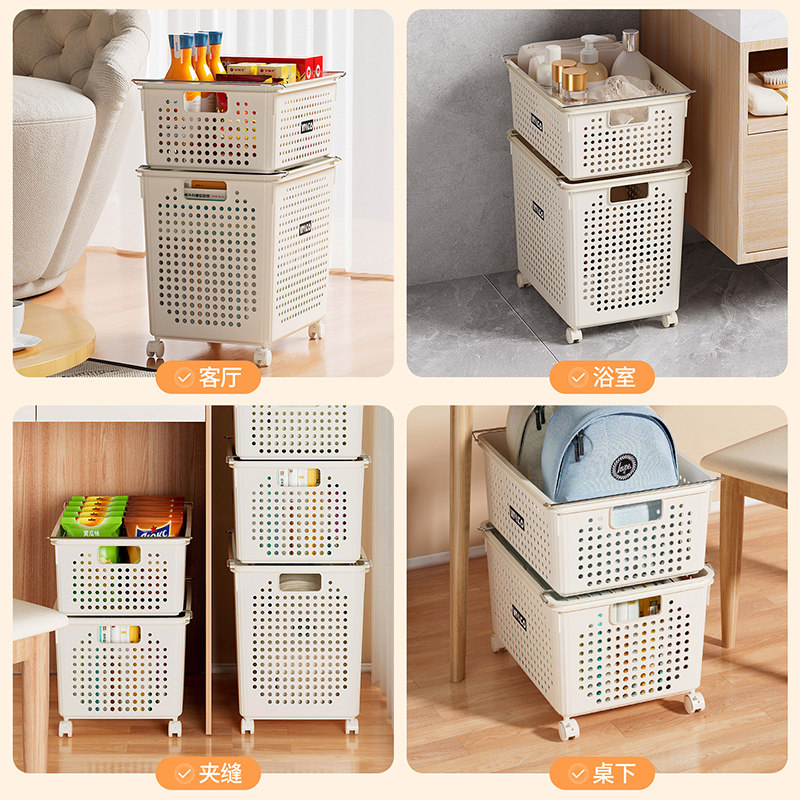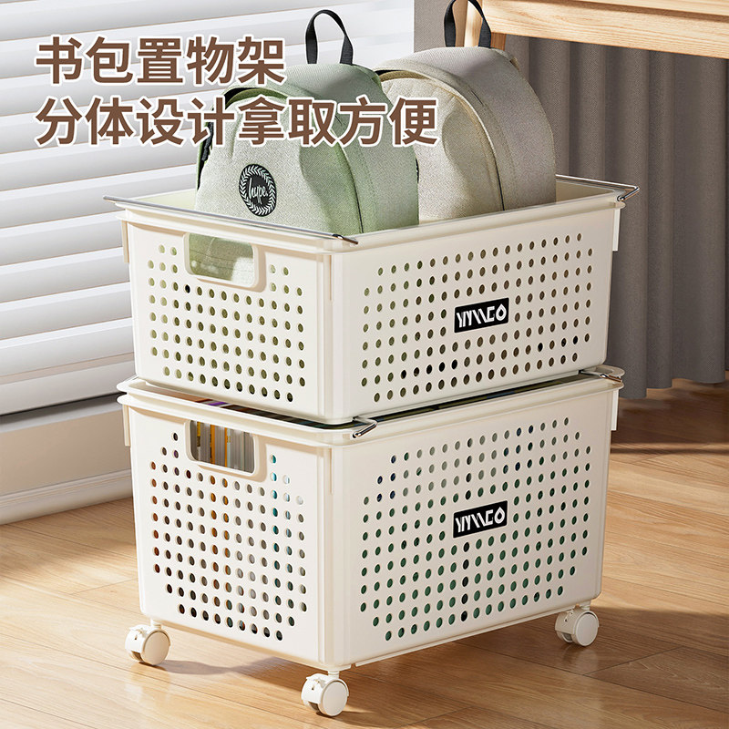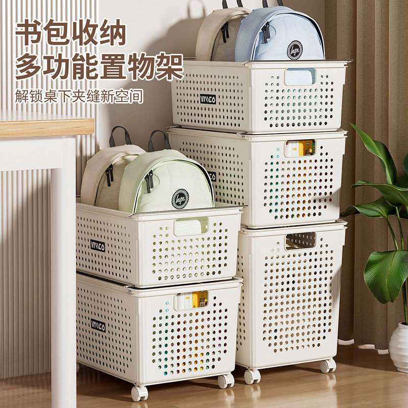 书本收纳箱教室学生可移动书包置物架桌下带滑轮收纳筐装书储物箱