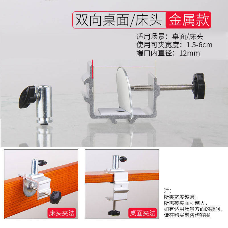 悬臂支架配件床上金属底座锁定夹子麦克风手机支架固定头桌面支撑