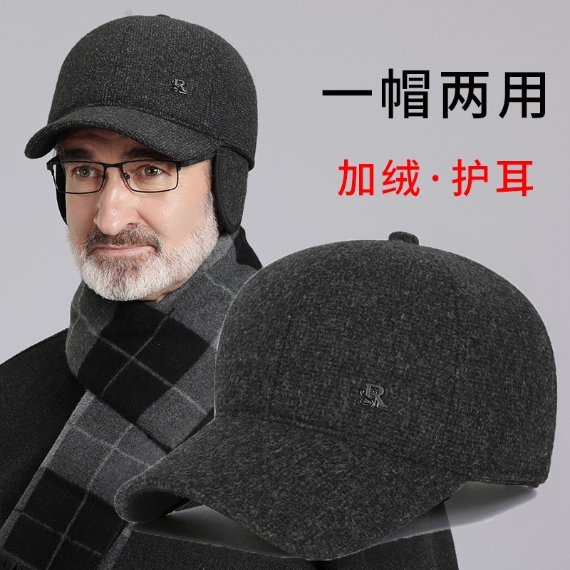 帽子男士冬季中老年人爸爸保暖棒球帽老人爷爷护耳老头棉帽防风