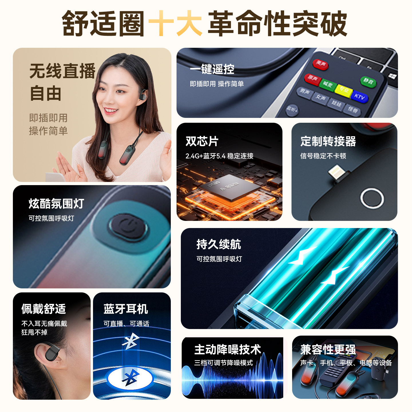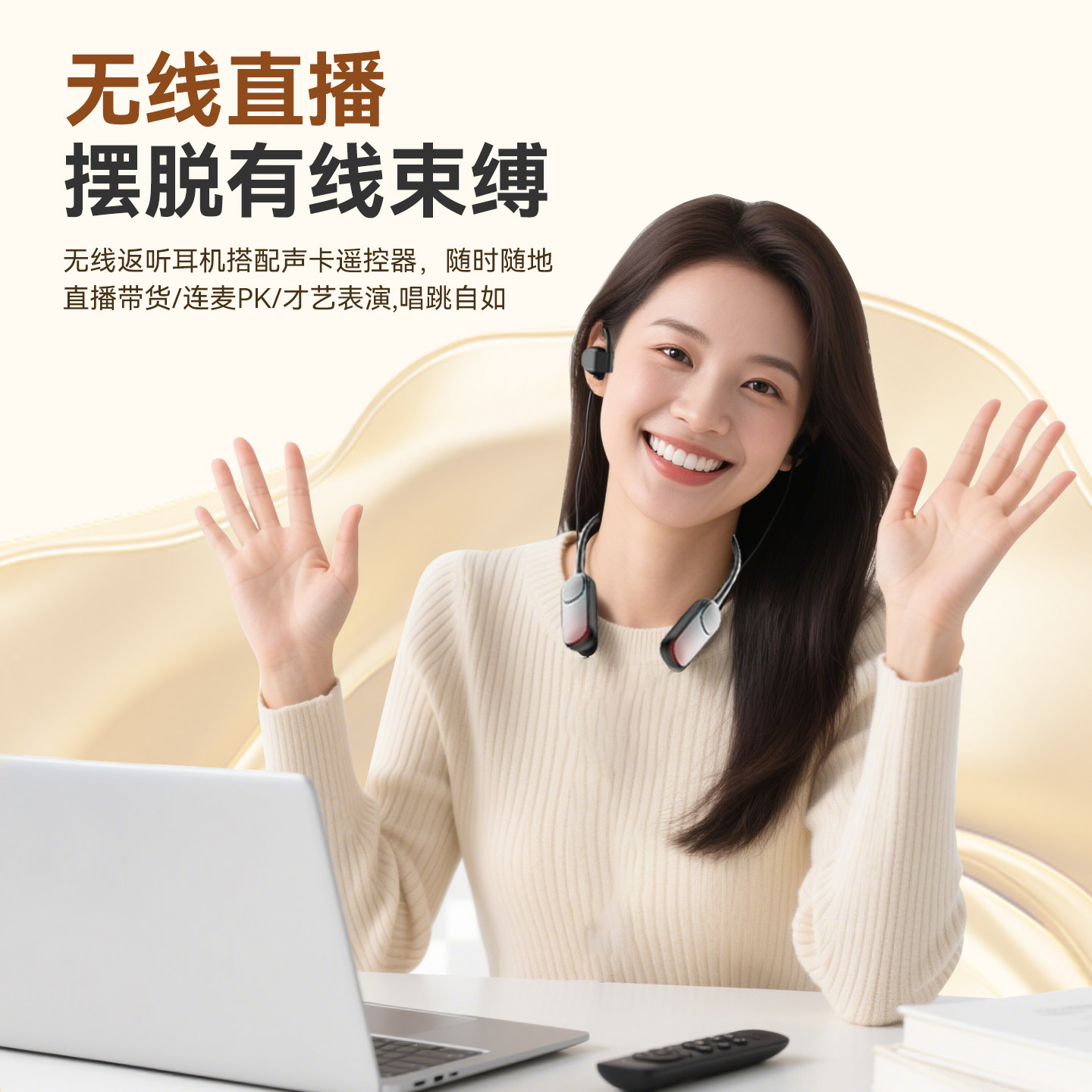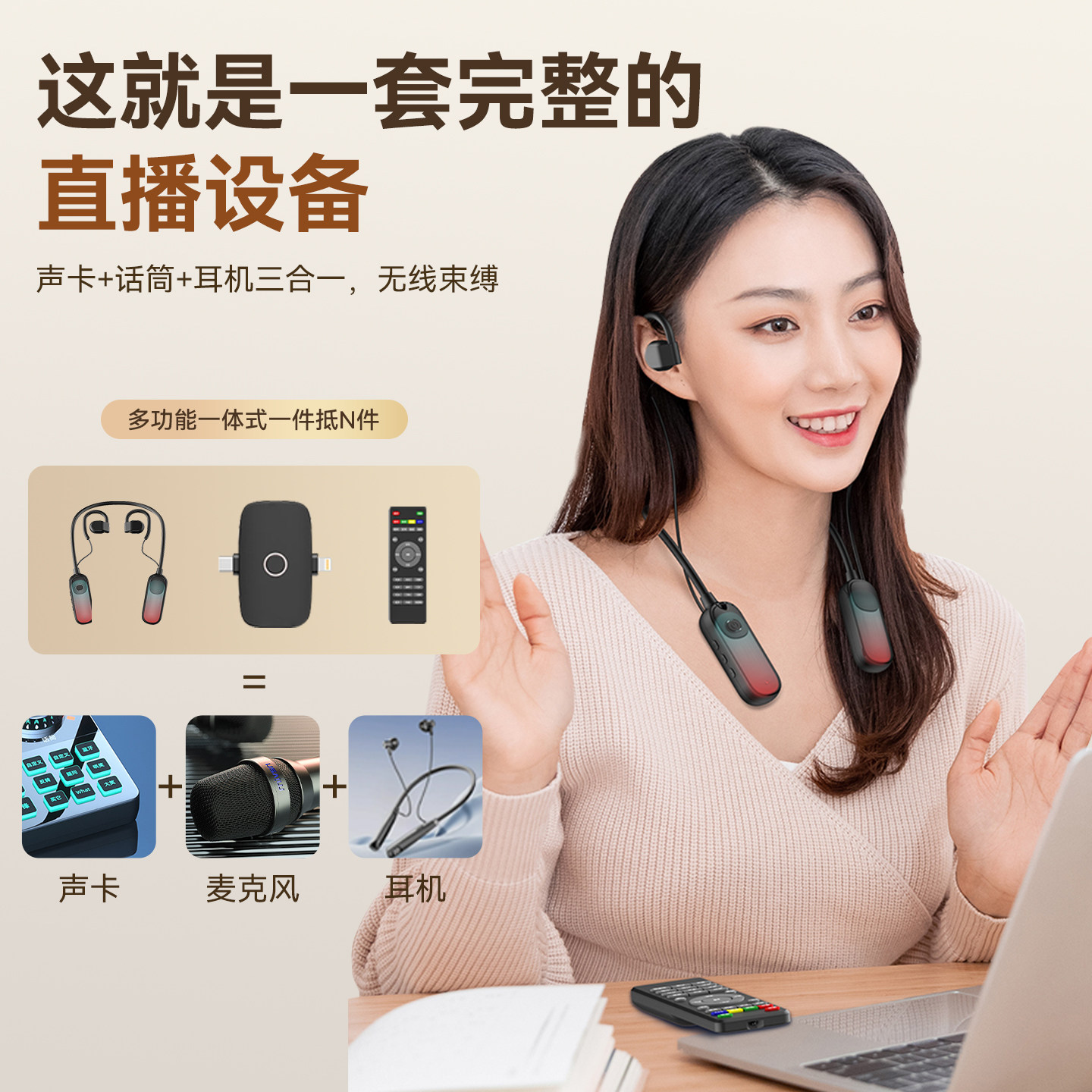 布谷鸟G10无线直播遥控声卡蓝牙耳机话筒一体挂脖开放式录音唱歌