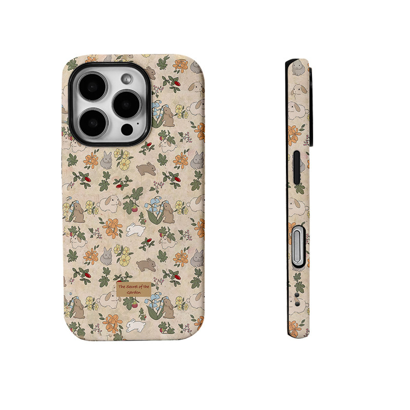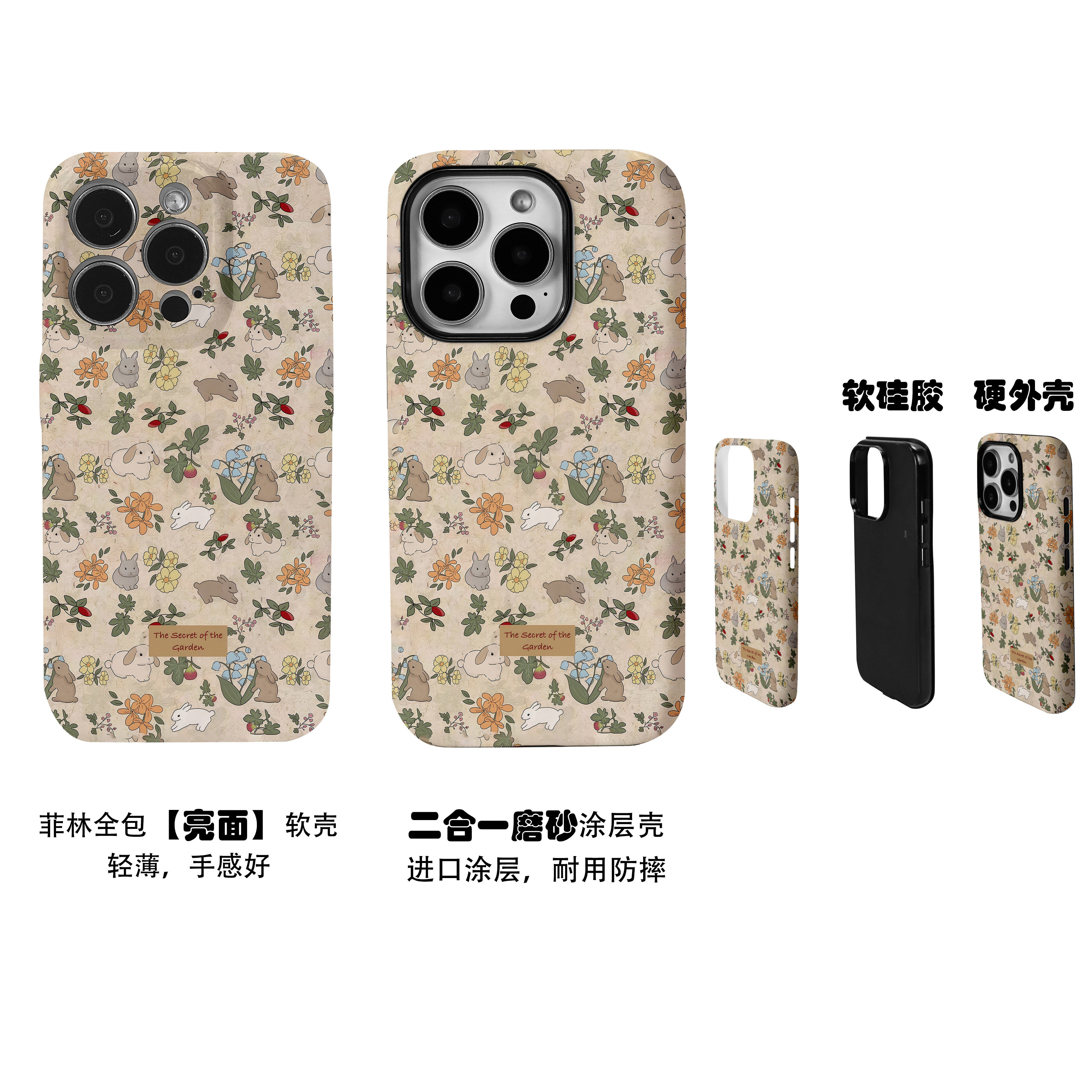 复古花园可爱兔兔碎花菲林二合一手机壳适用苹果17nova14华为p70mate60小米15opporen14ovivo荣耀300iPhone16