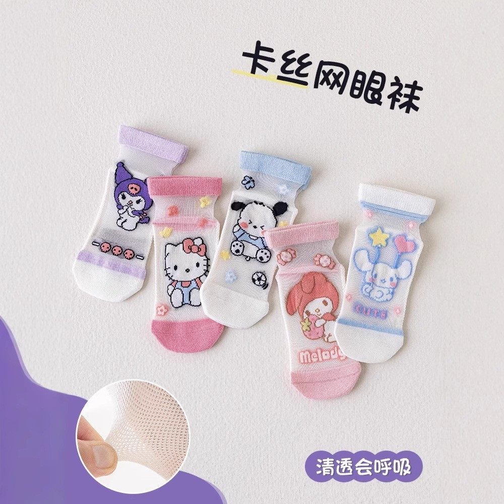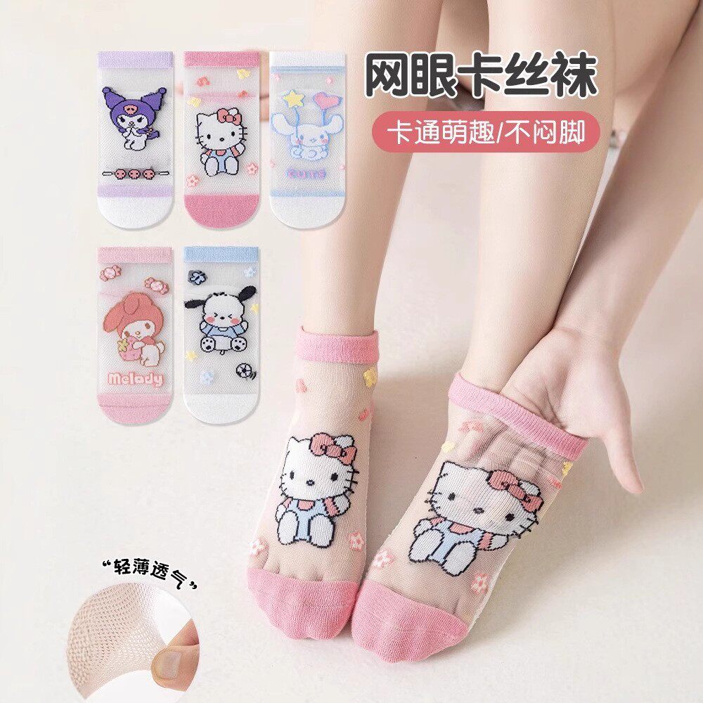 三丽鸥女童袜子夏薄款纯棉卡通女孩夏天透气网眼袜儿童春夏冰丝袜