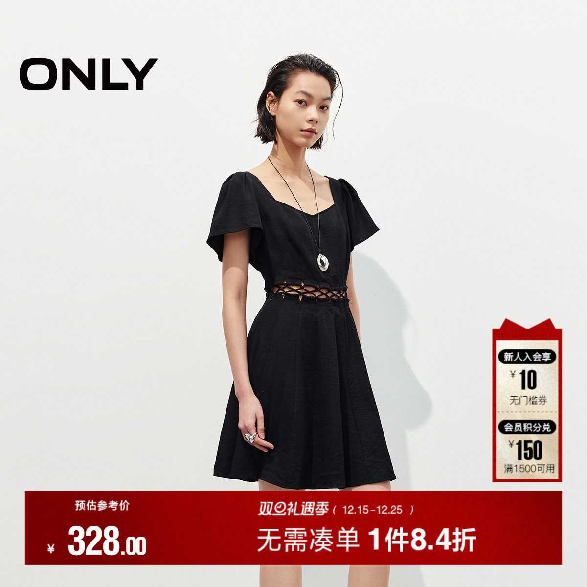 ONLY2025夏季新款法式腰部镂空设计心形领口短袖黑色白色连衣裙女