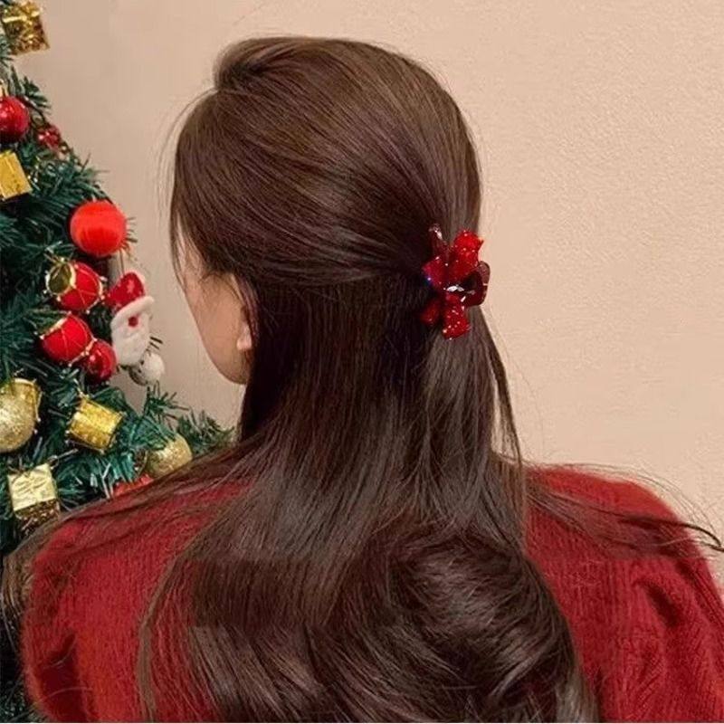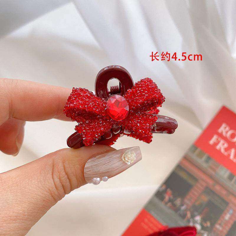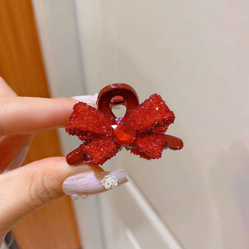 浓郁红色~蝴蝶结刘海小号抓夹!元旦新年后脑勺碎发夹边夹子水钻