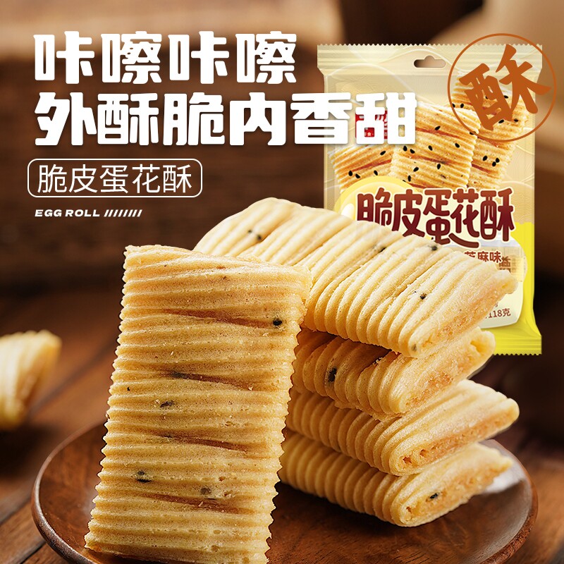 千丝脆皮蛋花酥芝麻味休闲下午茶点心充饥小零食蛋卷饼干年货节