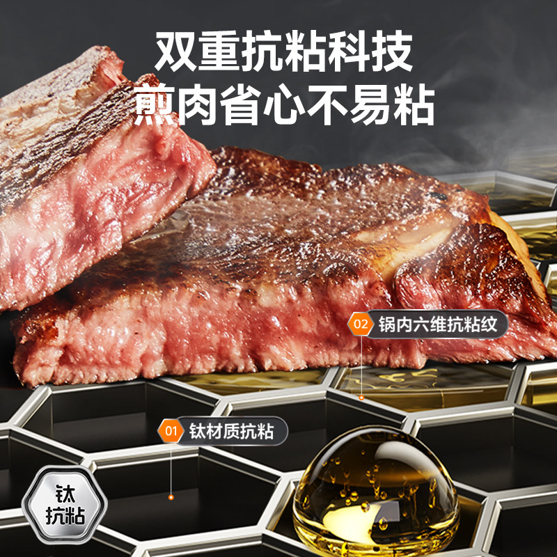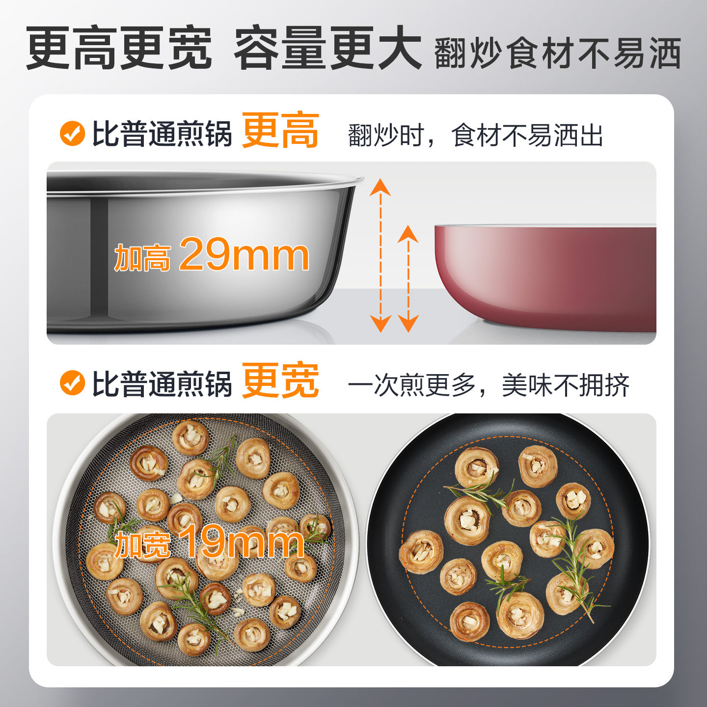 钛红芯控温平底锅不粘锅家用无涂层炒菜煎蛋牛排电磁炉专用深煎锅