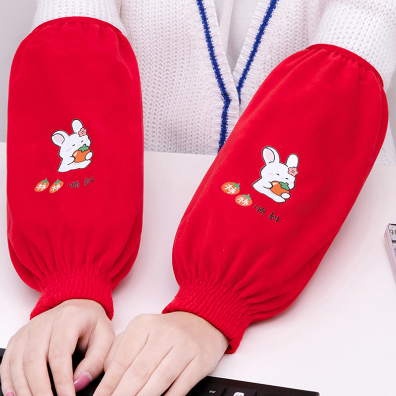 秋冬季工作袖套手袖女厨房护袖干活长款套袖家用黑色红色灰色袖口