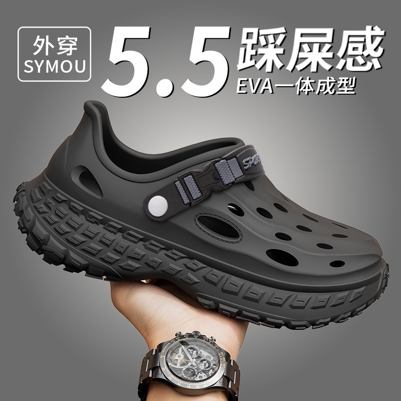洞洞鞋男士防滑夏季2025新款踩屎感增高沙滩鞋包头户外凉鞋女外穿