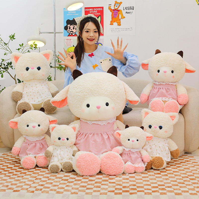 新款可爱布丁小羊玩偶猫咪公仔毛绒玩具女孩睡觉抱枕儿童礼品娃娃
