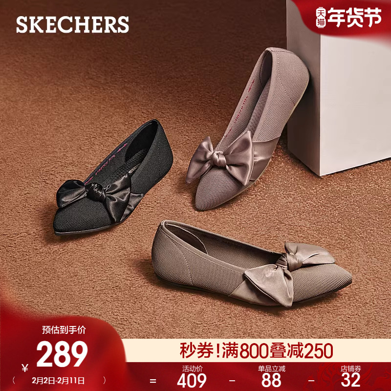 斯凯奇春季女子简约蝴蝶结平底单鞋舒适时尚浅口鞋百搭优雅休闲鞋