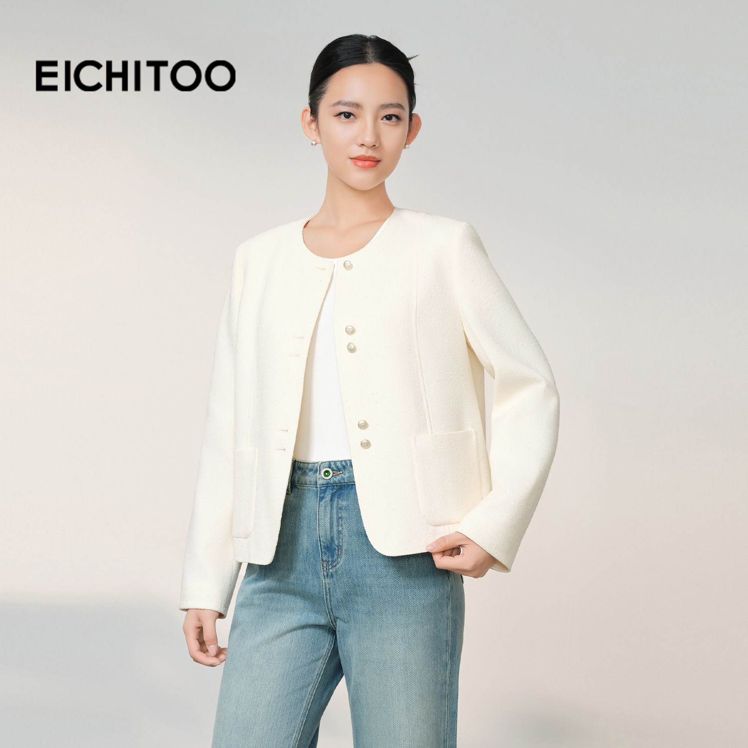 爱居兔小香风优雅短外套女2026年春季新款简约气质圆领小个子上衣