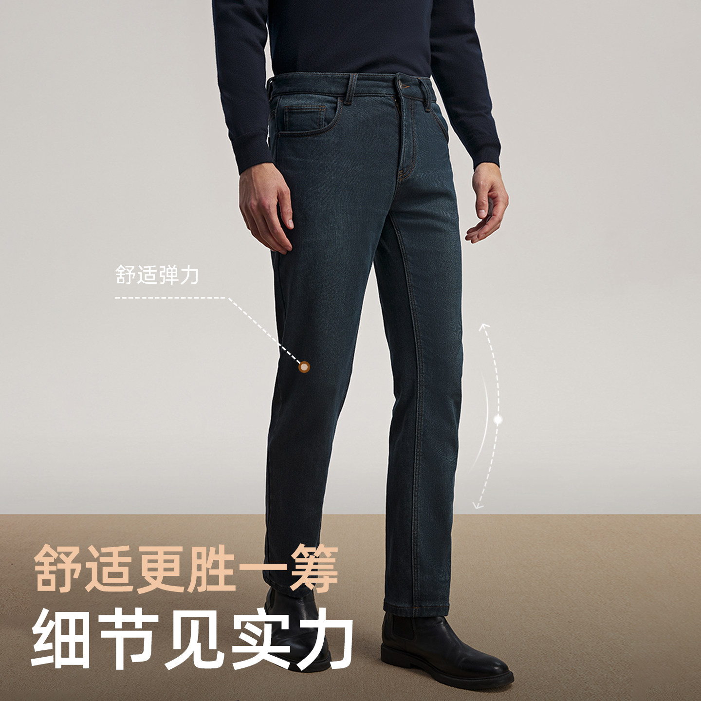 【雪尼尔保暖】雅戈尔男牛仔裤秋冬新款休闲户外高级拉链厚长裤子