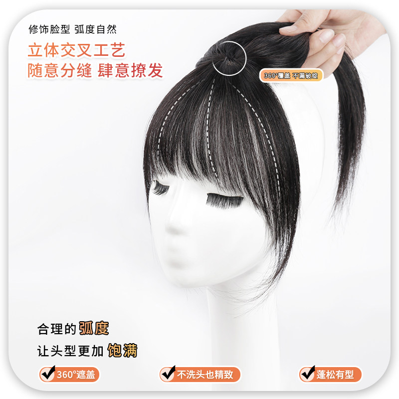 刘海假发女自然前额头顶补发假发片夏轻薄全真发遮白发3d法式刘海