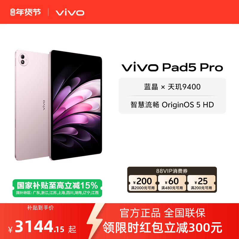 【部分区域国补15% 16+512粉色】 vivo Pad5 Pro平板电脑新款天玑9400学生开学好物官方正品13英寸