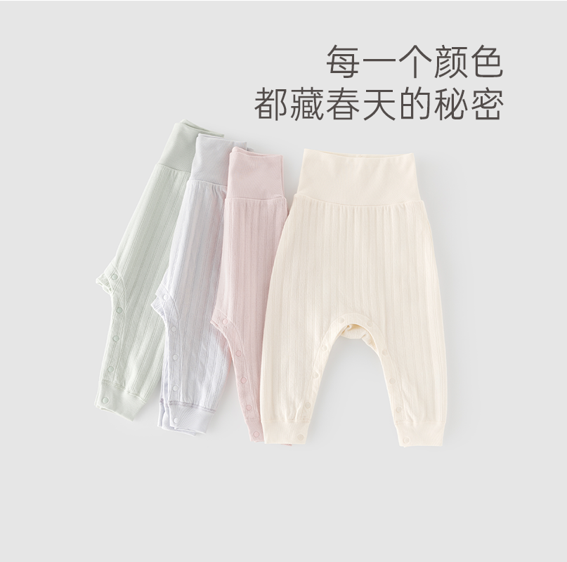 木生棉婴儿纯棉长裤春秋季宝宝高腰护肚大pp裤免脱按扣裆弹力裤子