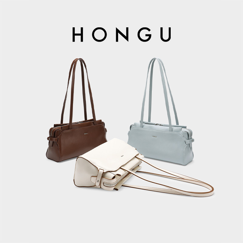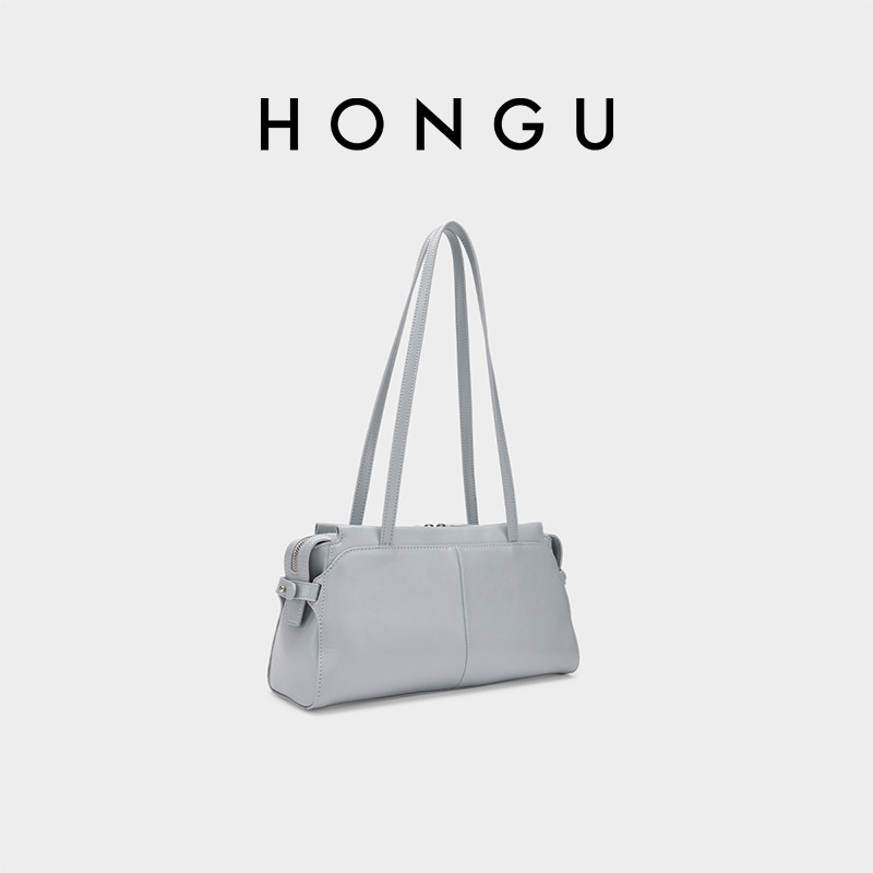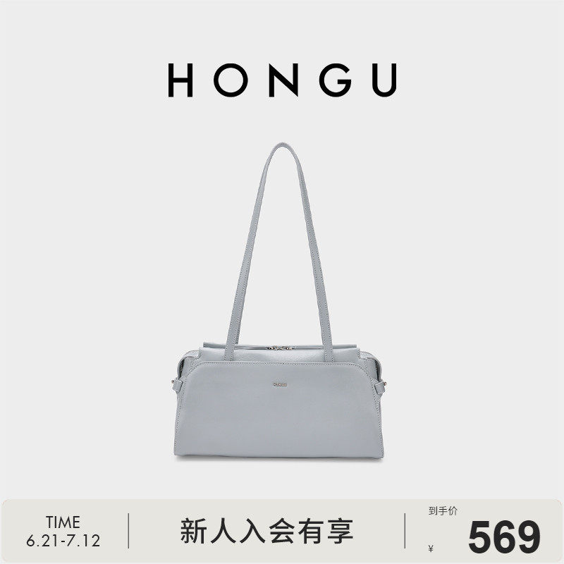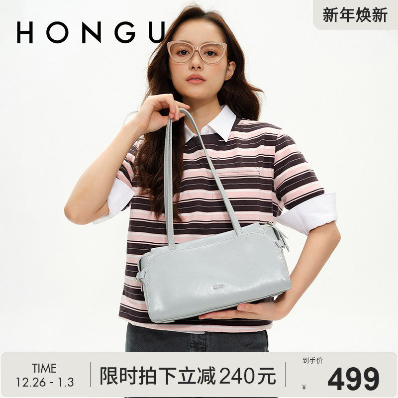 红谷包包2025新款质感真皮单肩腋下包通勤上班牛皮保龄球包女士包