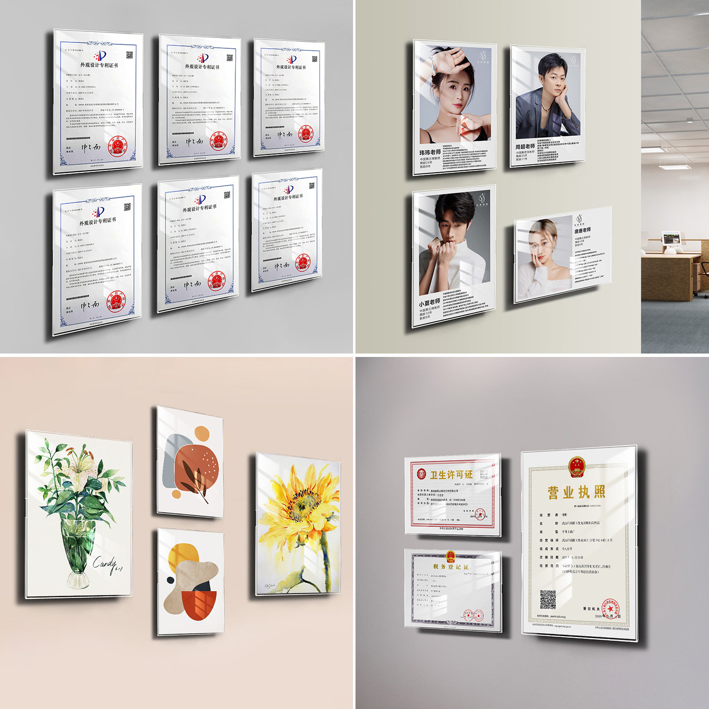 亚克力悬浮相框专利证书展示框教师简介奖状荣誉挂墙照片墙展示墙