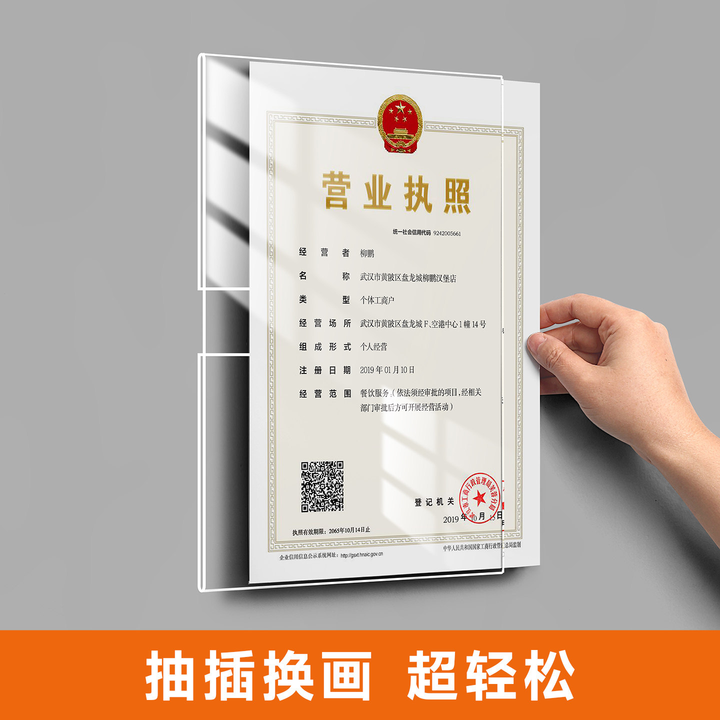 工商营业执照框架a4免打孔挂墙相框亚克力a3食品卫生三合一框正本