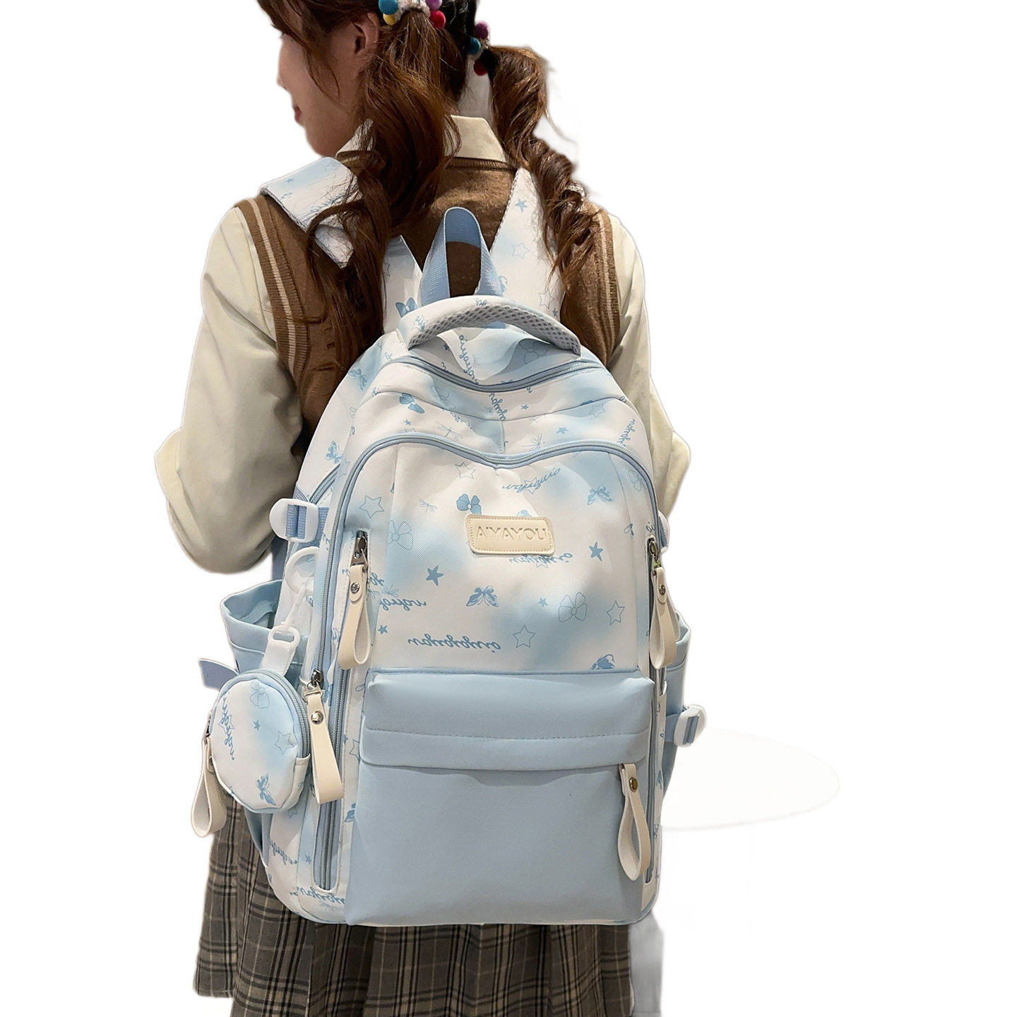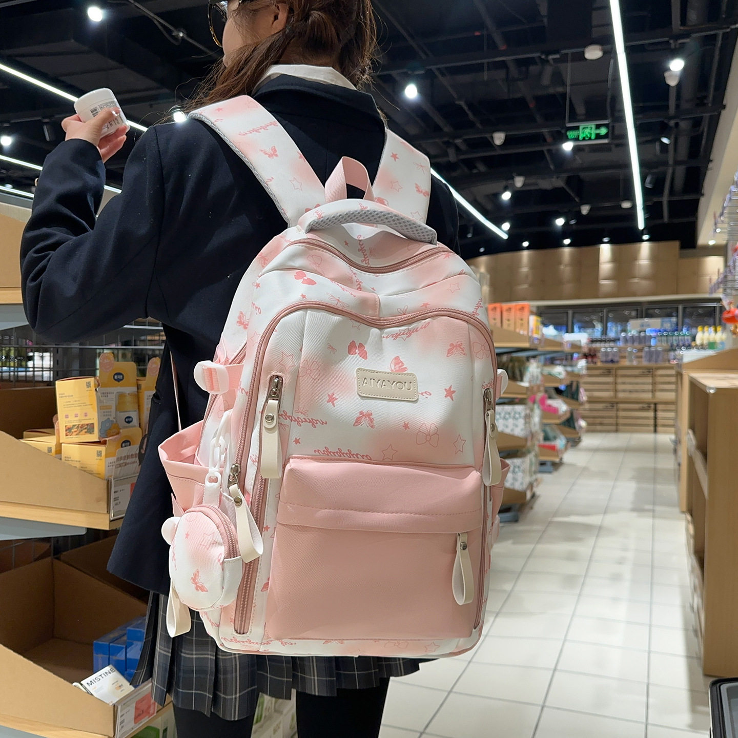 新款高颜值星星蝴蝶印花双肩包女学生书包大容量可爱百搭休闲背包