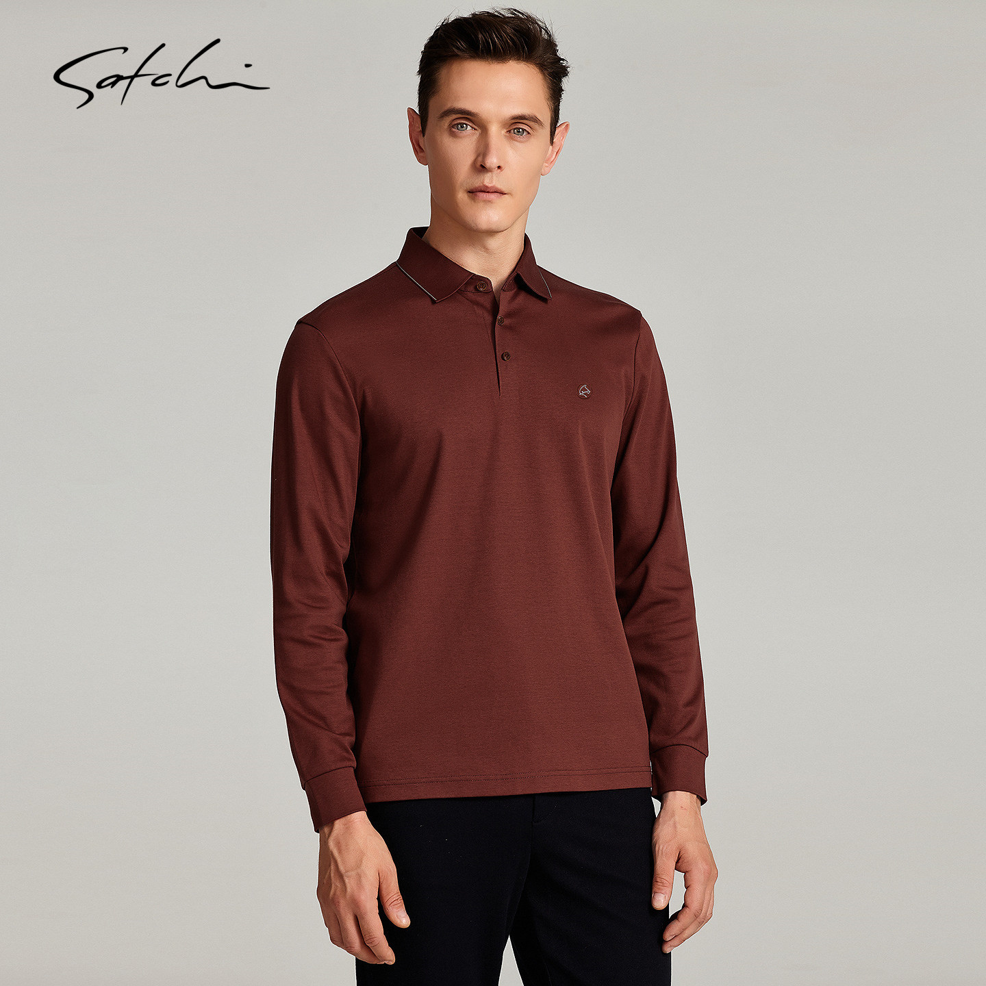 [马年系列]SATCHI沙驰男装男士长袖POLO衫秋季新款休闲高端T恤红