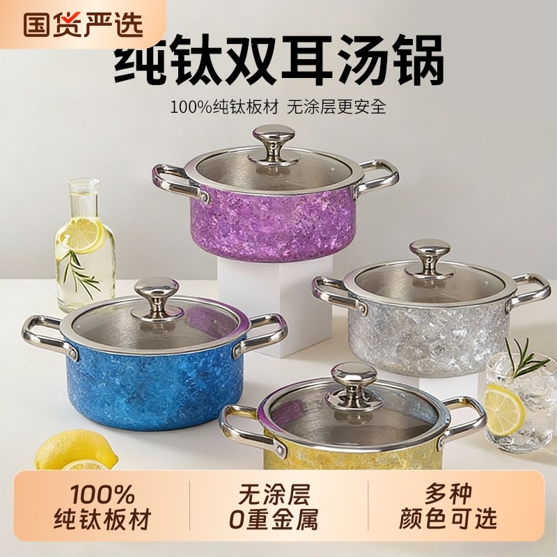 冰花结晶钛锅汤锅新款蒸煮无涂层双耳加厚大容量炖锅纯钛锅燃气