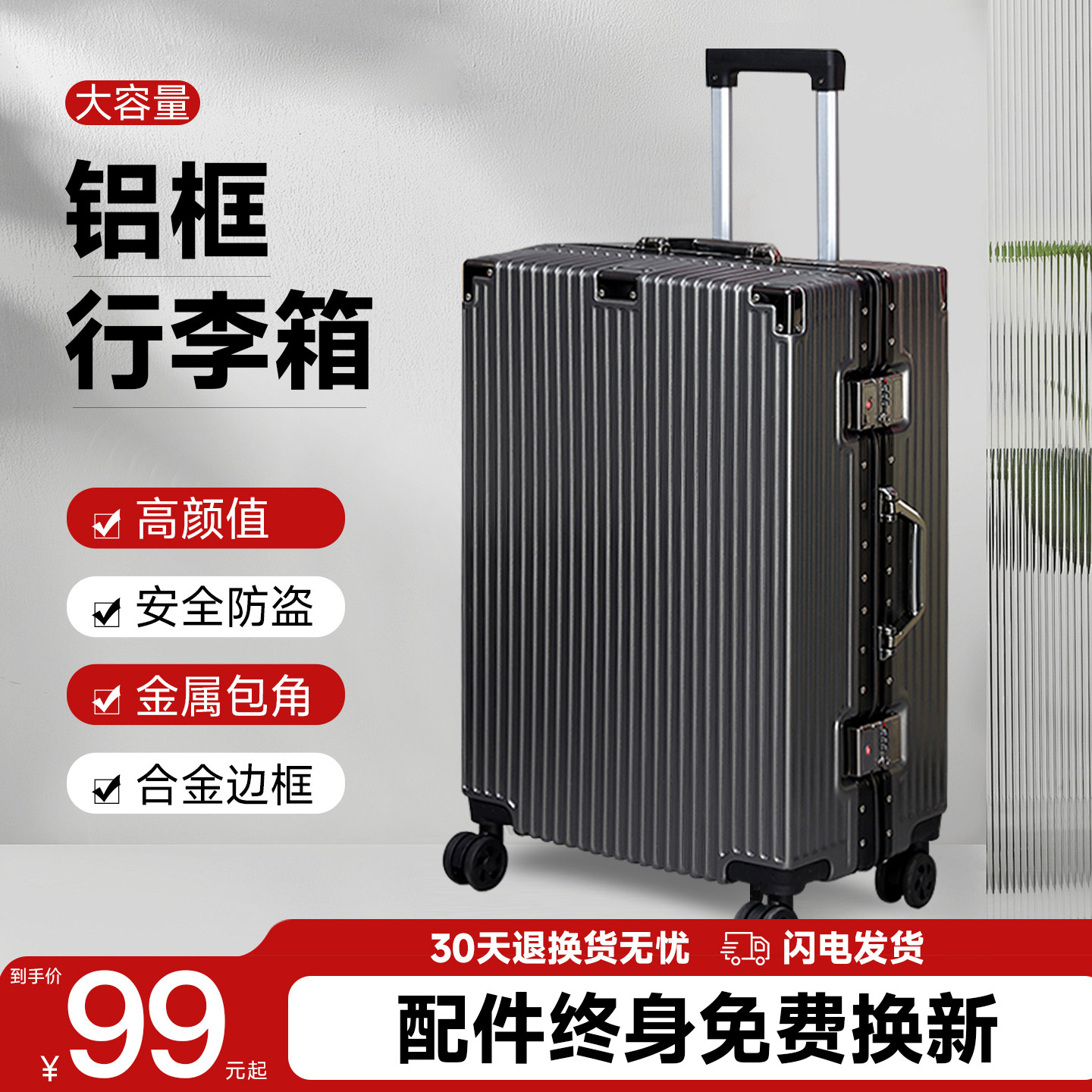 旅行箱行李箱铝框20拉杆箱万向轮24女男学生26登机密码皮箱子28寸