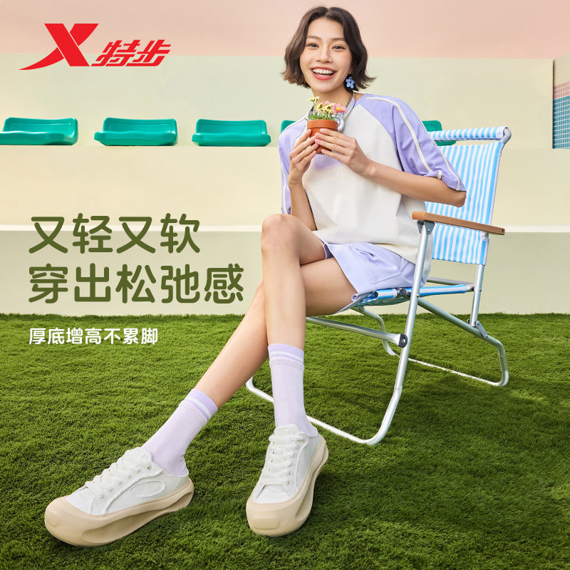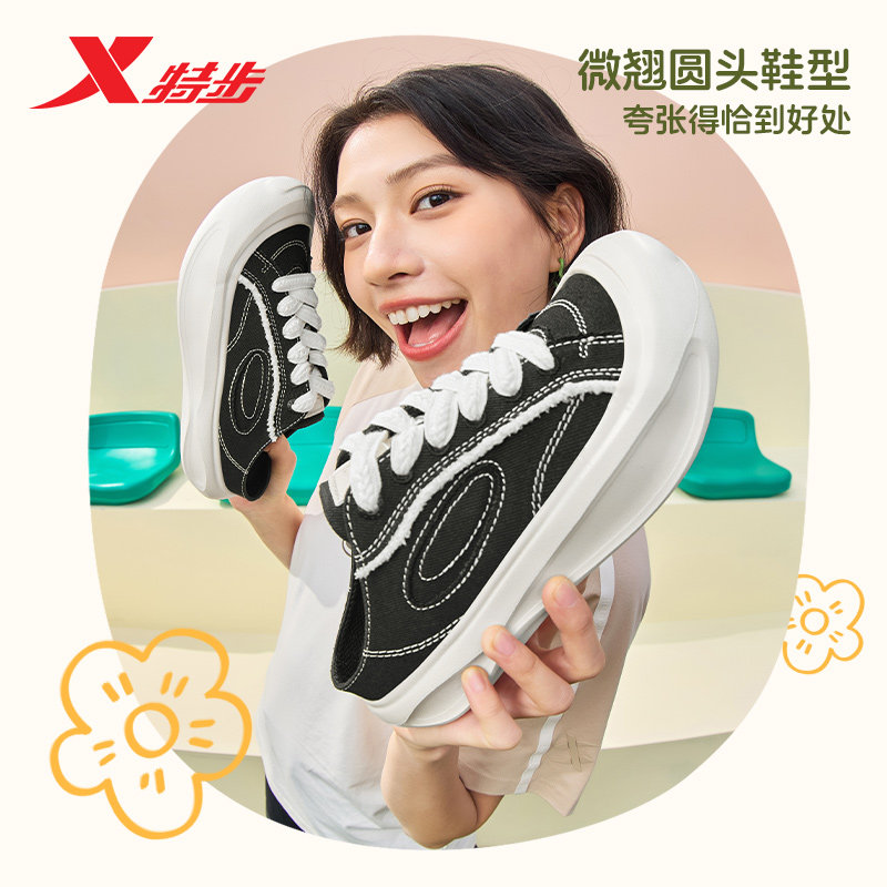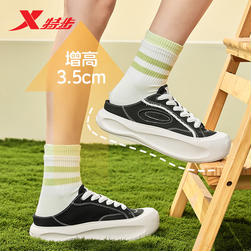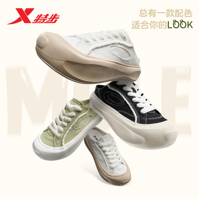 特步帆布鞋一脚蹬2025夏季新款鞋子小白鞋女鞋运动女款休闲鞋板鞋