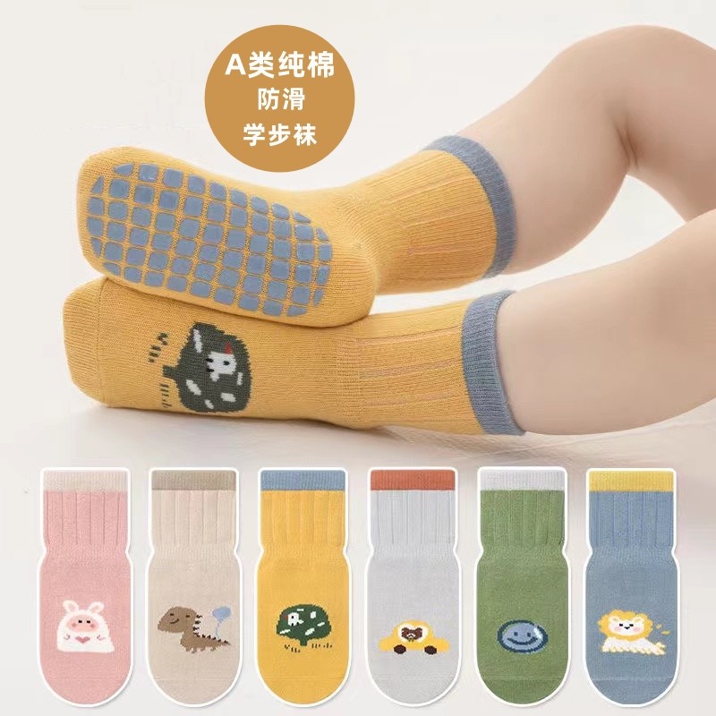 婴儿袜子春秋季宝宝0一6岁新生儿秋冬季纯棉防滑地板袜儿童中筒袜