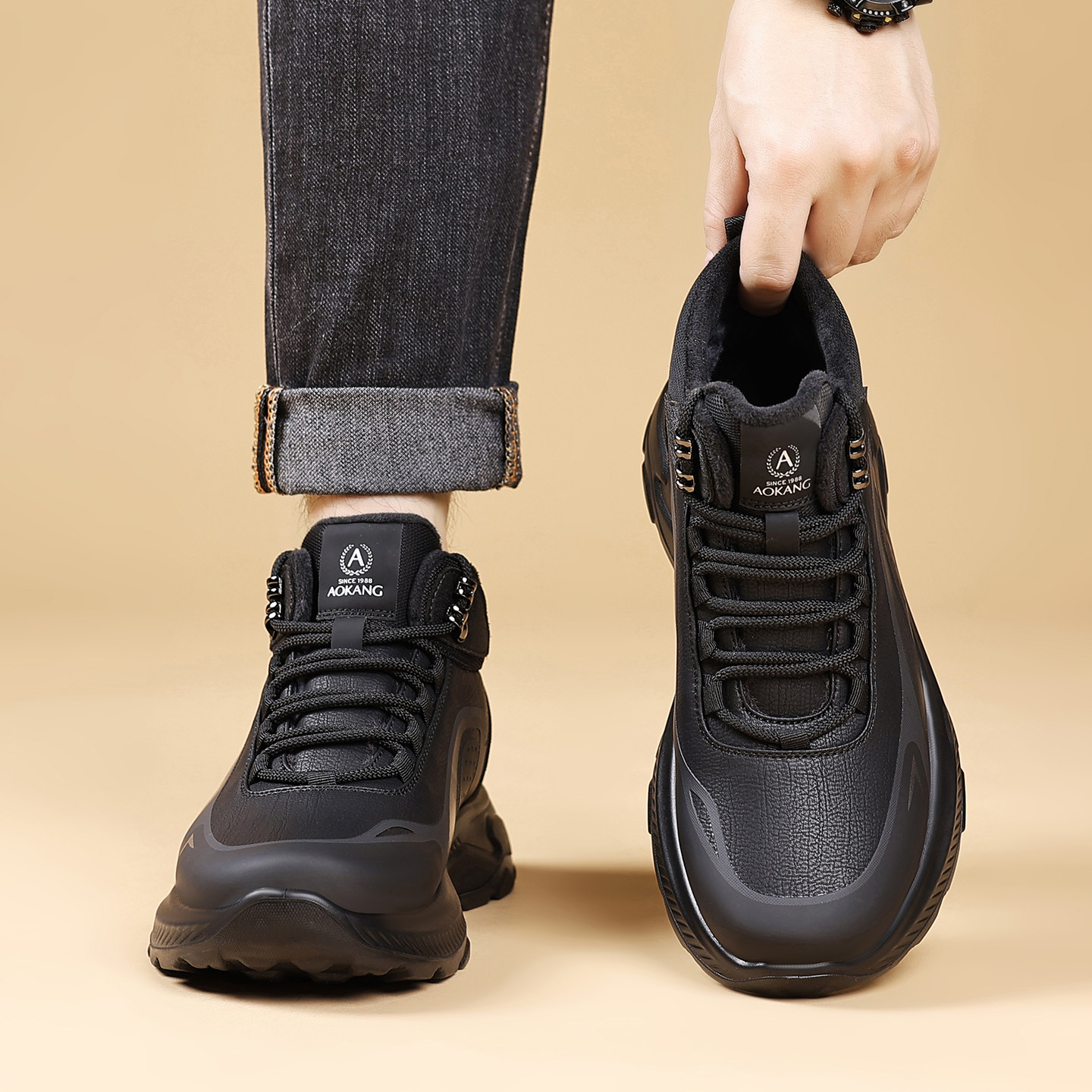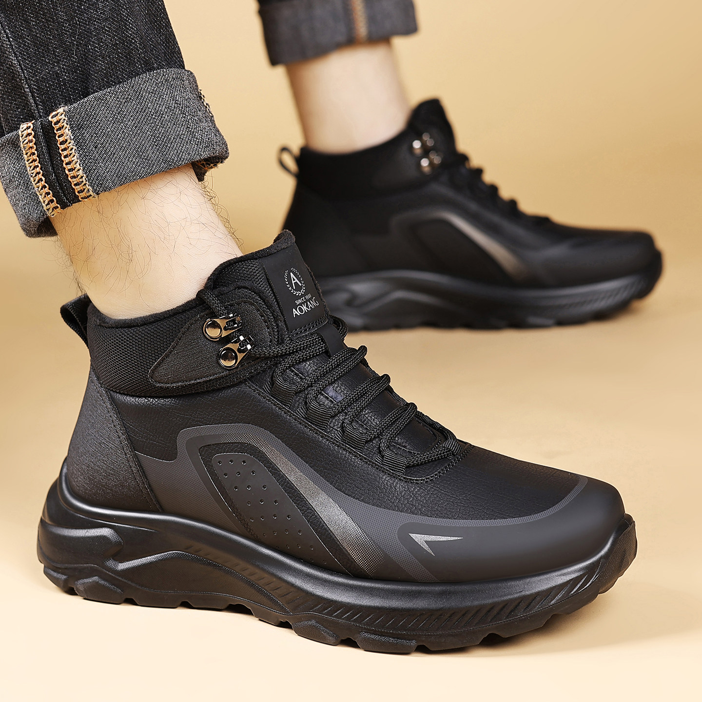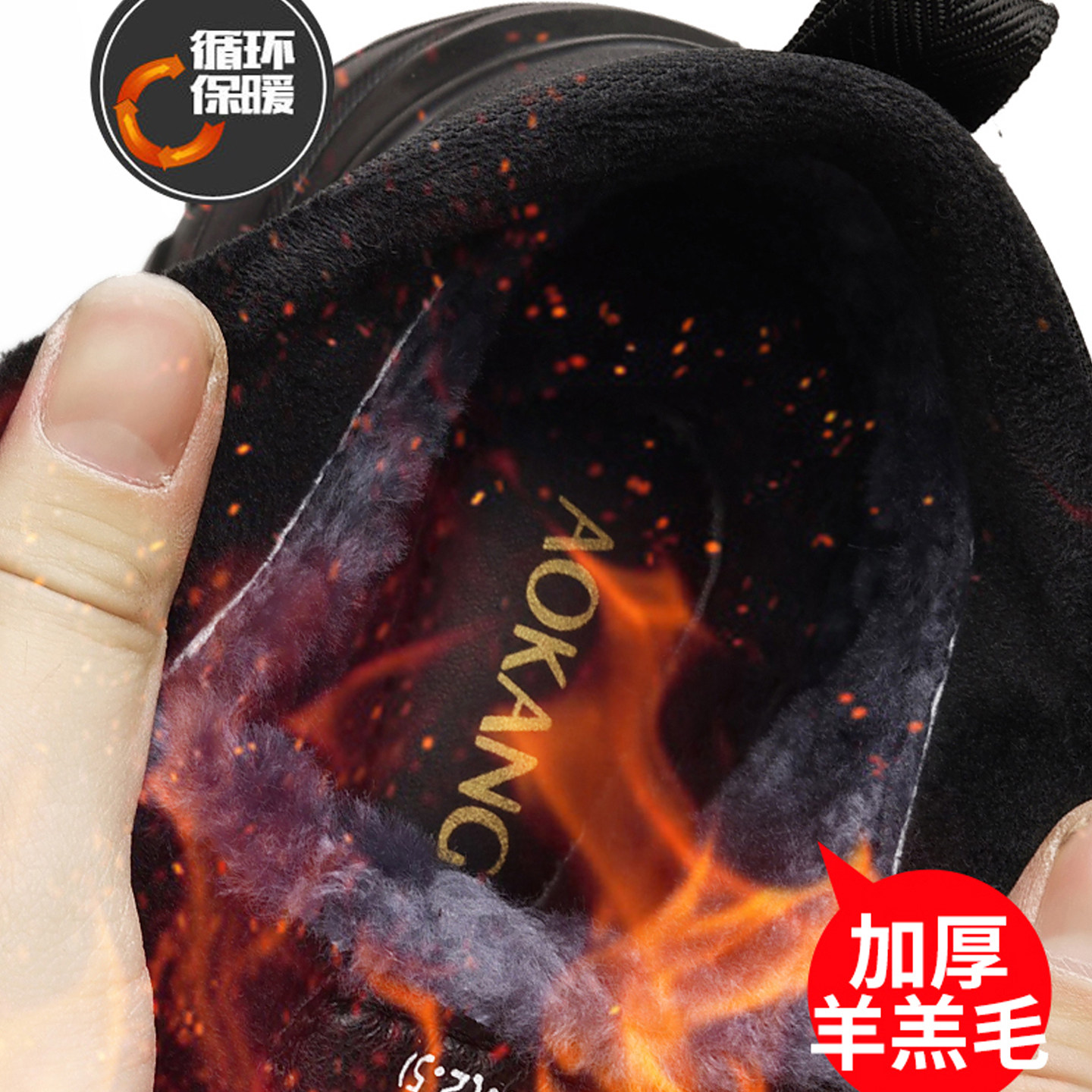 奥康 男鞋2025冬季男士高帮加绒保暖羊毛棉皮鞋休闲工装雪地靴子H