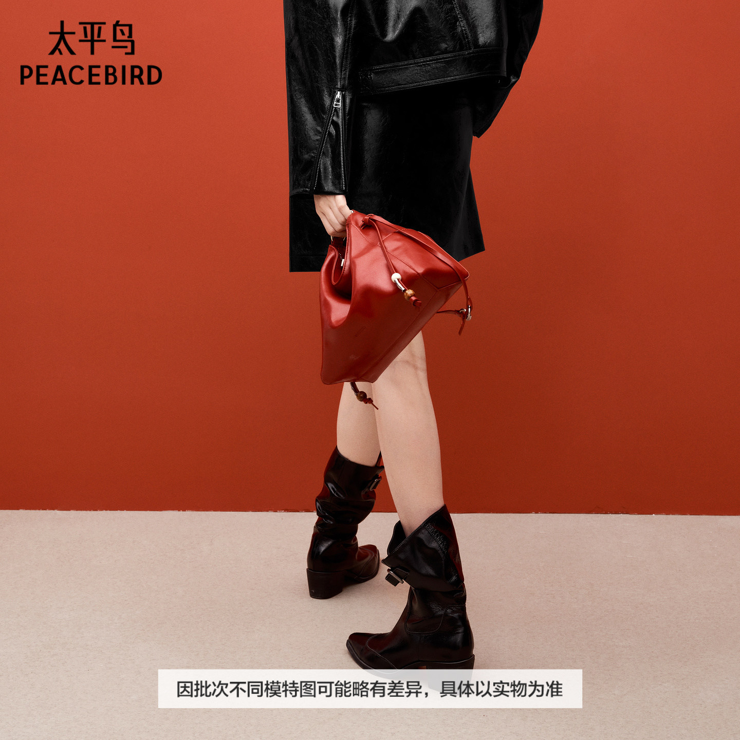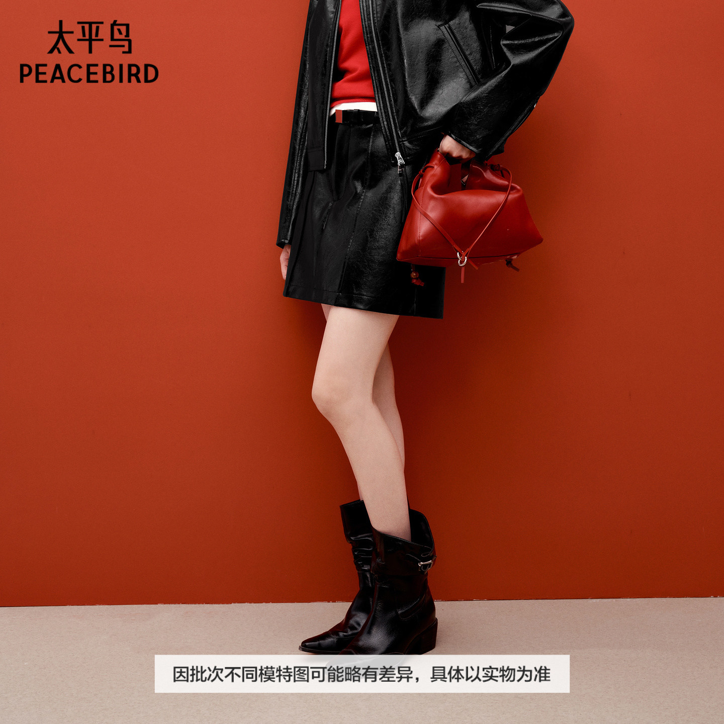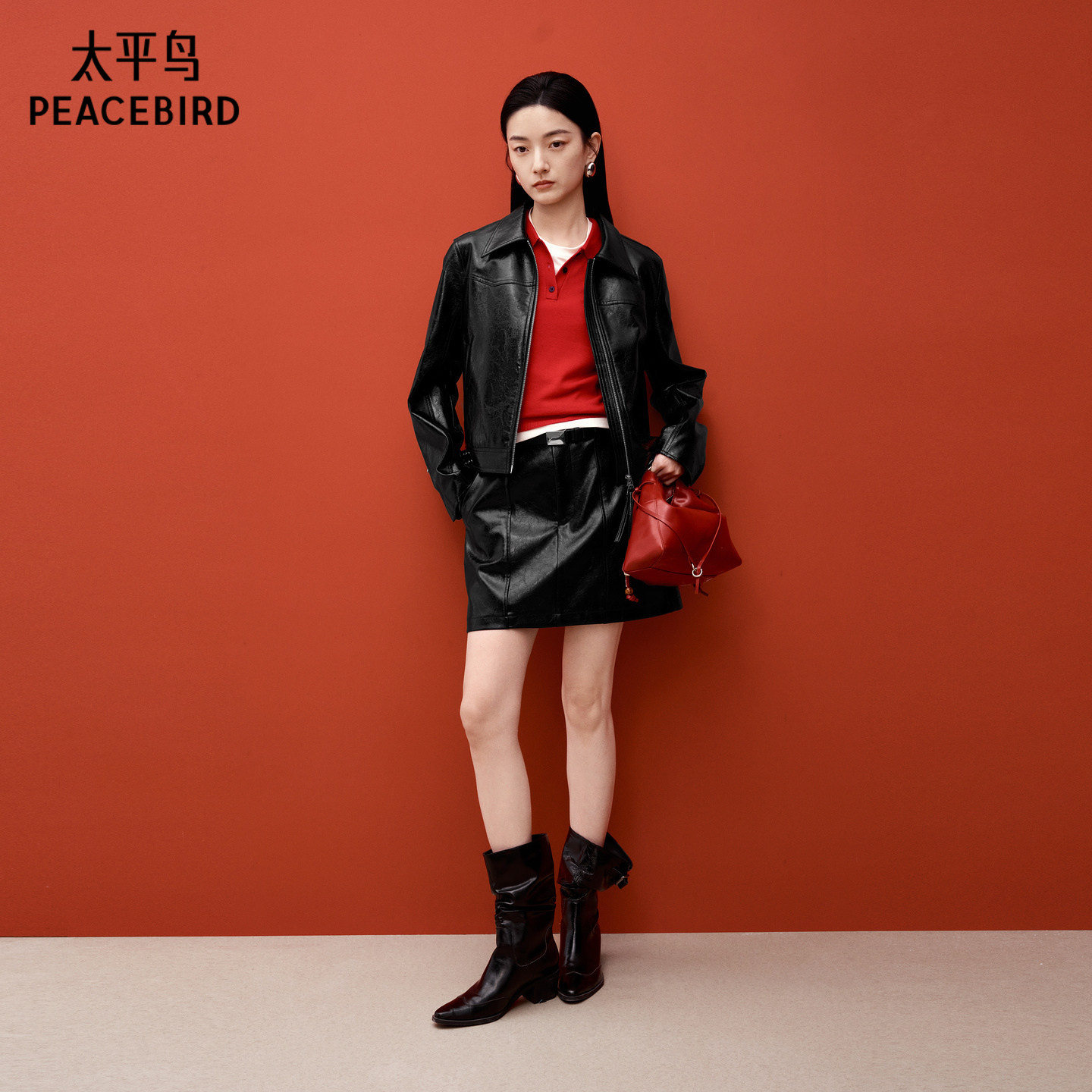 【商场同款】太平鸟黑色PU皮半身裙女A字短裙春装新款A1GEG1236