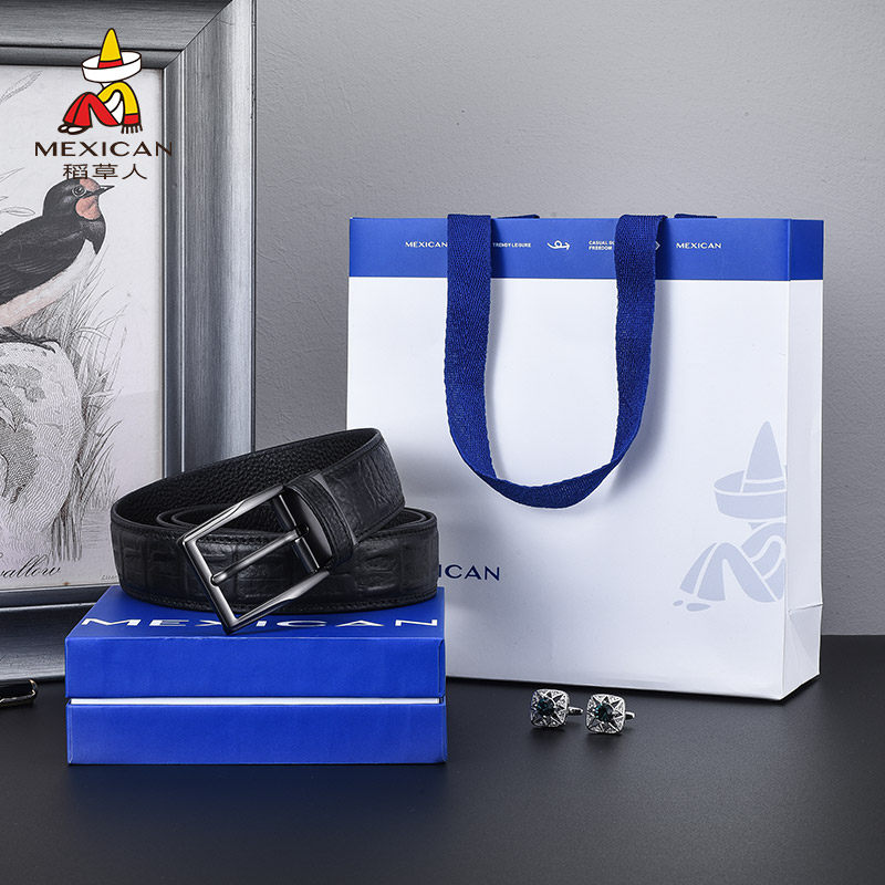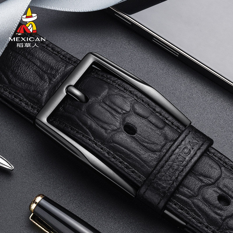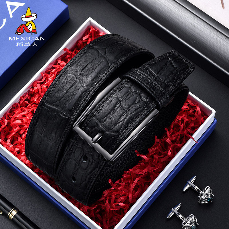稻草人皮带男士真皮新款针扣鳄鱼纹裤带高级正品商务牛皮腰带男潮