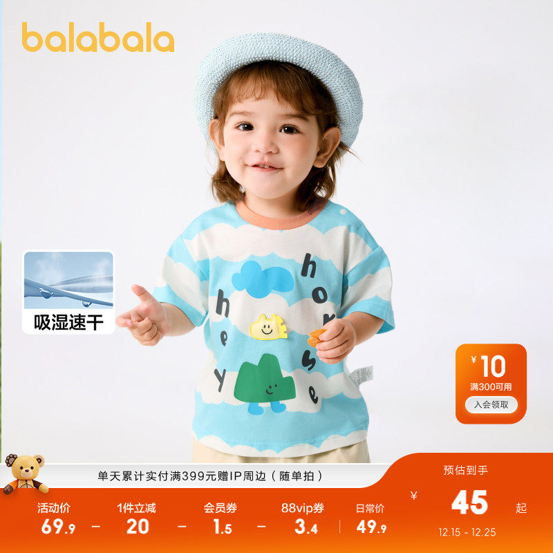 巴拉巴拉婴儿t恤宝宝上衣女童衣服男童短袖2025新款夏装时髦可爱