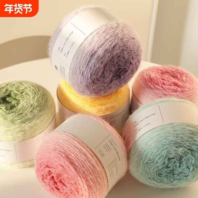 小球球毛线团手工diy编织坐垫地垫空调盖毯柔软豆豆线钩针材料包