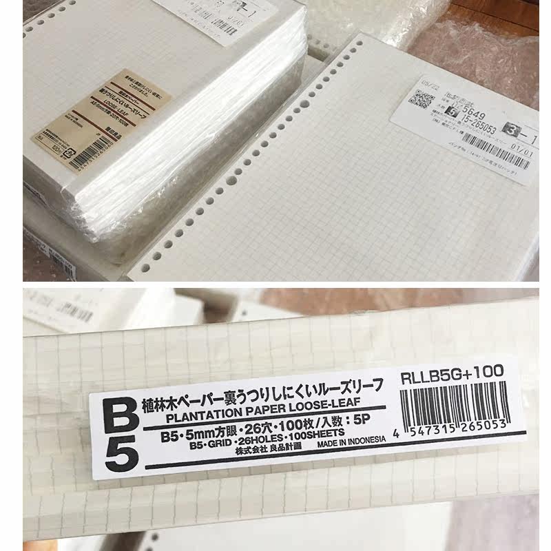 现货日本文具 正品无印良品MUJI 植林木A5/B5 方格 活页纸