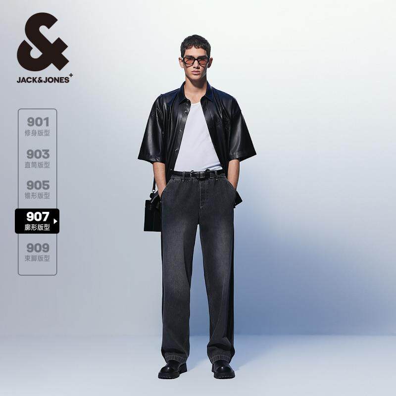 杰克琼斯男装牛仔裤子春秋季2025新纯棉抽绳松紧水洗宽松廓形男款