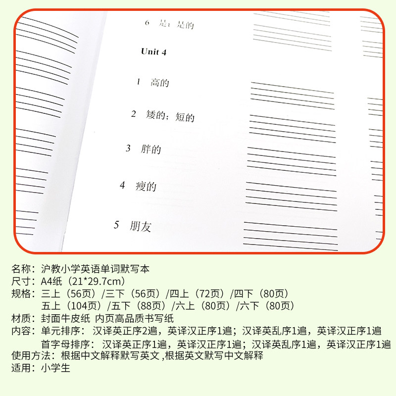 沪教版三四五六年级上下单词默写上海教育小学英语课本配套课业本