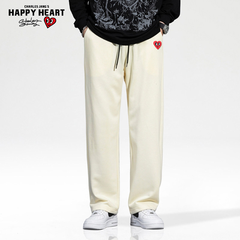查尔斯桃心 裤子男宽松直筒春秋季2025新款休闲阔腿爱心黑色长裤