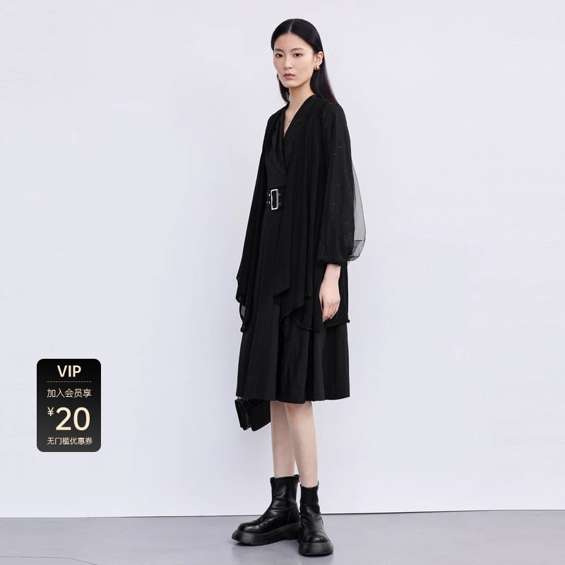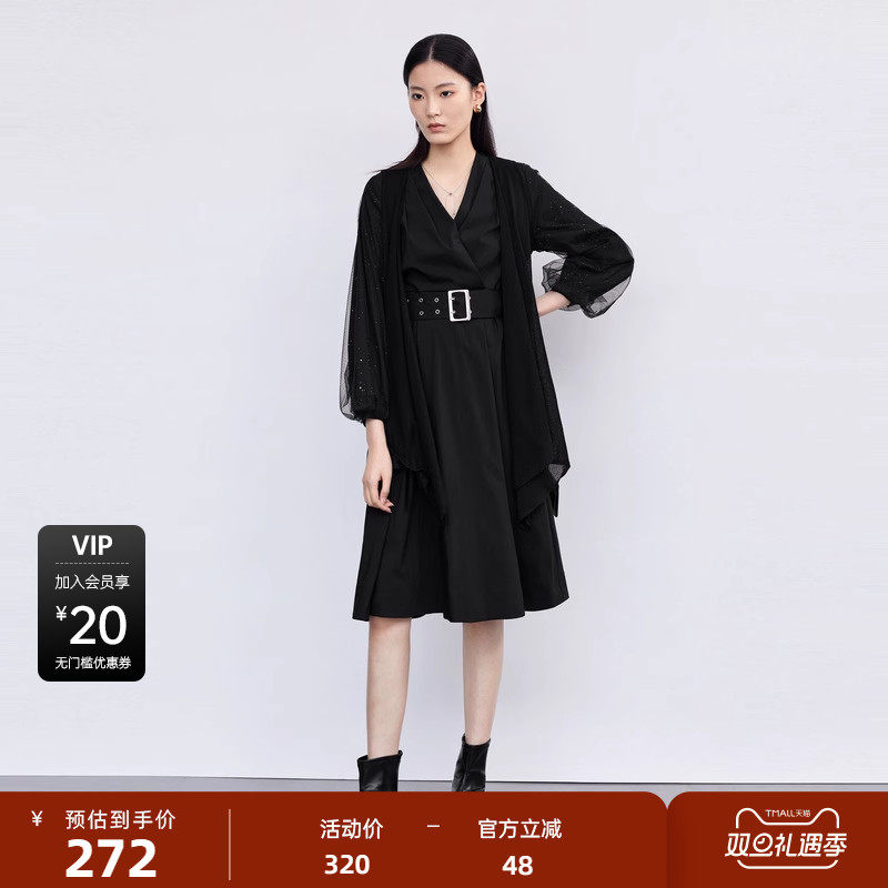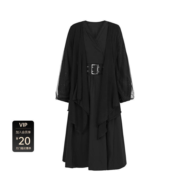 【sdeer奥莱】圣迪奥秋时尚网纱收腰外套连衣裙套装S223Z1454
