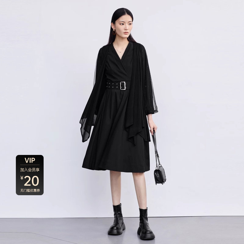 连衣裙套装 网纱拼接 收腰设计