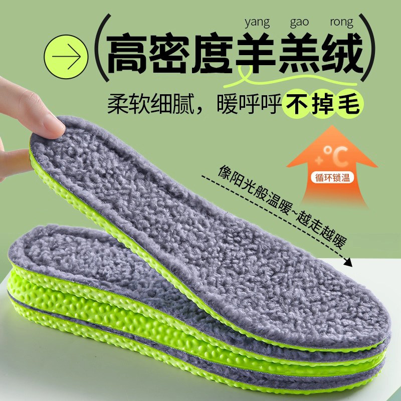 羊毛鞋垫冬季棉鞋垫透气吸汗防臭皮毛仿澳洲羊毛加绒加厚保暖鞋垫