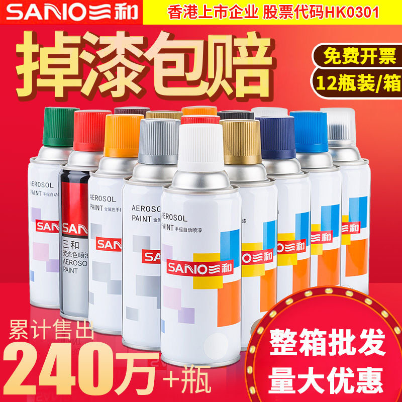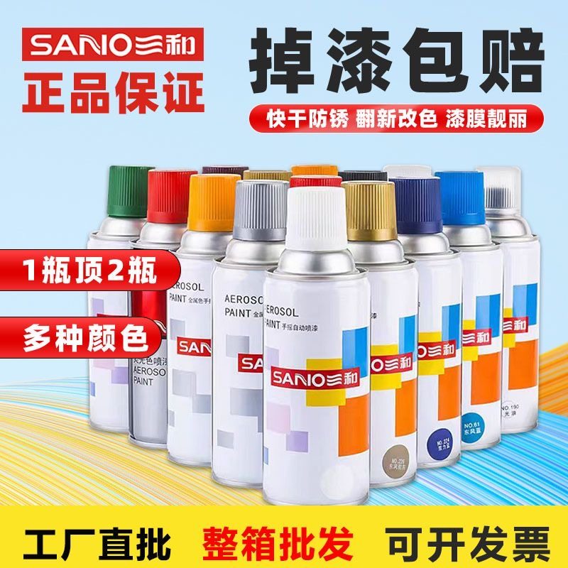三和自喷漆轮毂汽车防锈墙面修复手摇喷漆油漆黑色白色7035金属漆