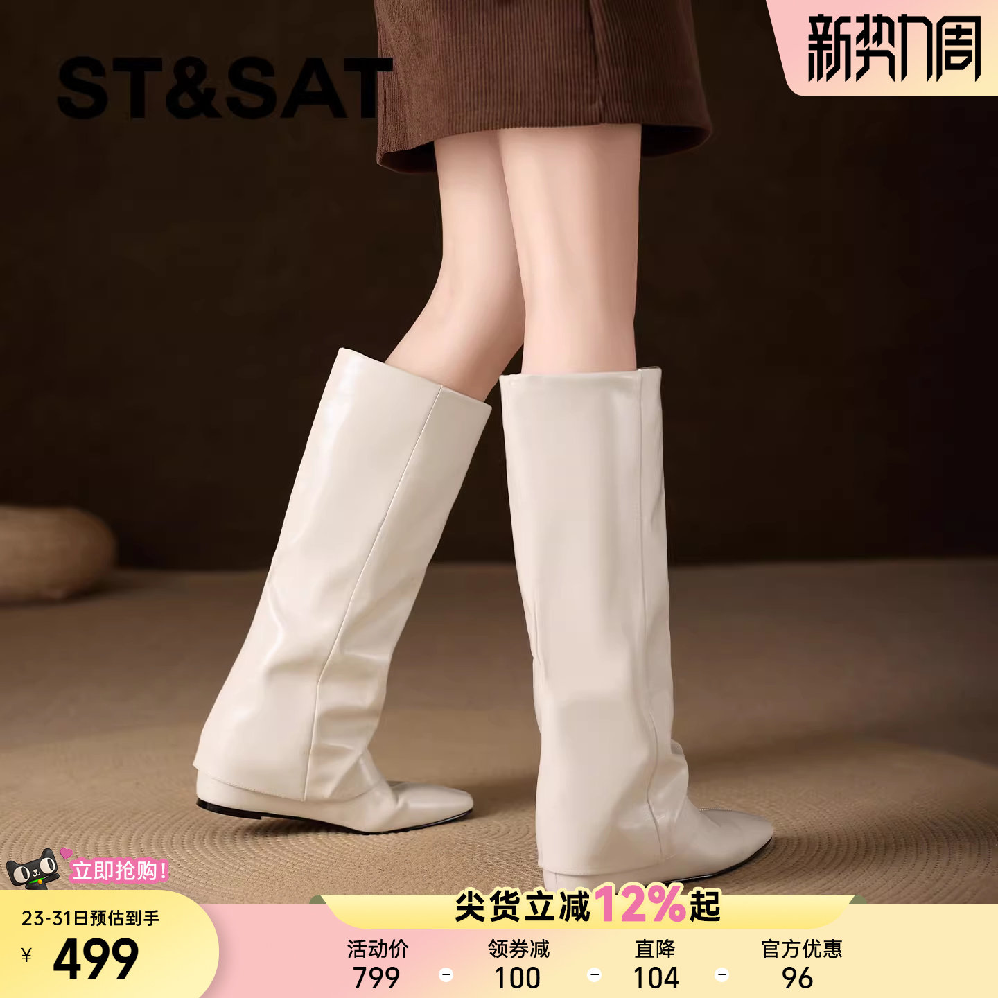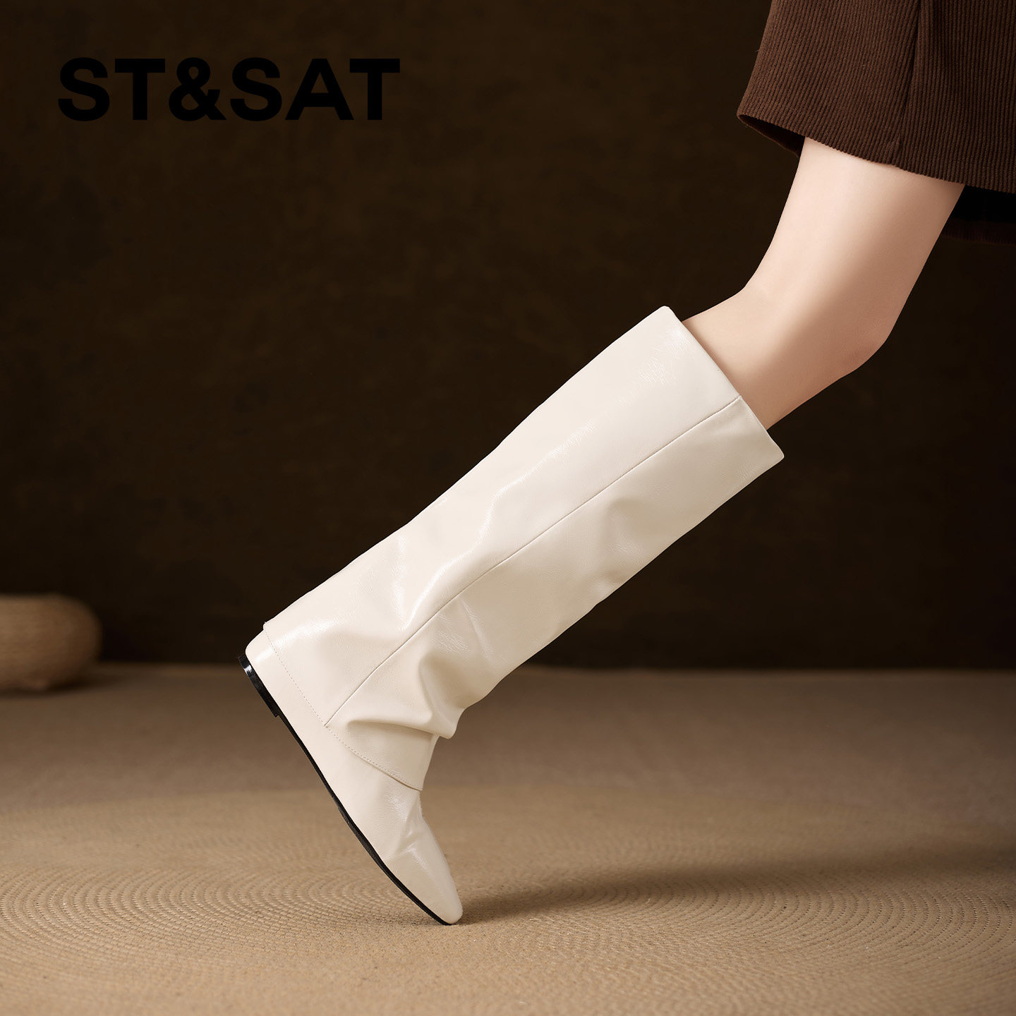 星期六直筒骑士靴女2025冬季新款方头内增高显瘦裤管靴西部靴长靴