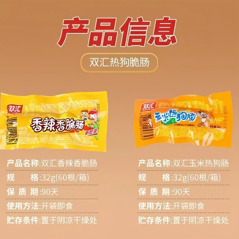 双汇润口火腿肠玉米香肠小吃包装即食香肠肉类炒菜儿童休闲零食