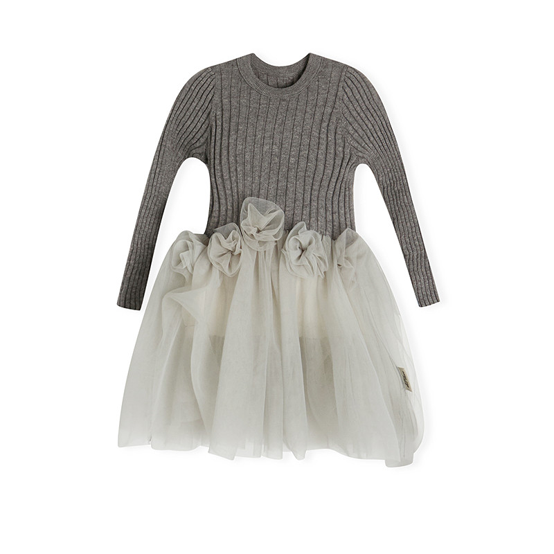 baleno junior春秋女童圆领长袖连衣裙撞色可爱时尚百搭纱纱裙子
