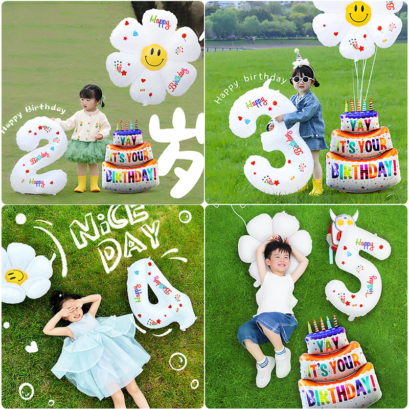 蛋糕气球装饰生日快乐仪式感小女孩布置场景男童派对拍照氛围道具