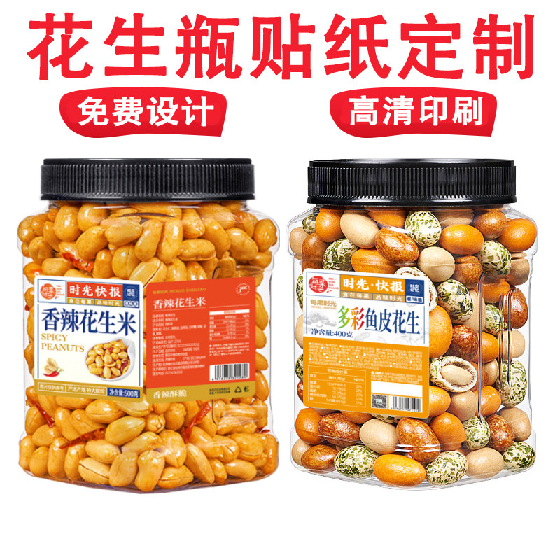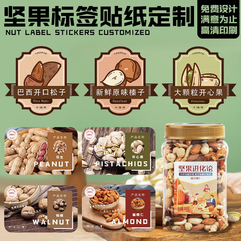 定制花生瓜子系列标签灌装瓶身贴纸陈皮蒜香酒鬼花生南瓜子五香花生袋装瓶装松子榛子板栗腰果夏威夷果不干胶