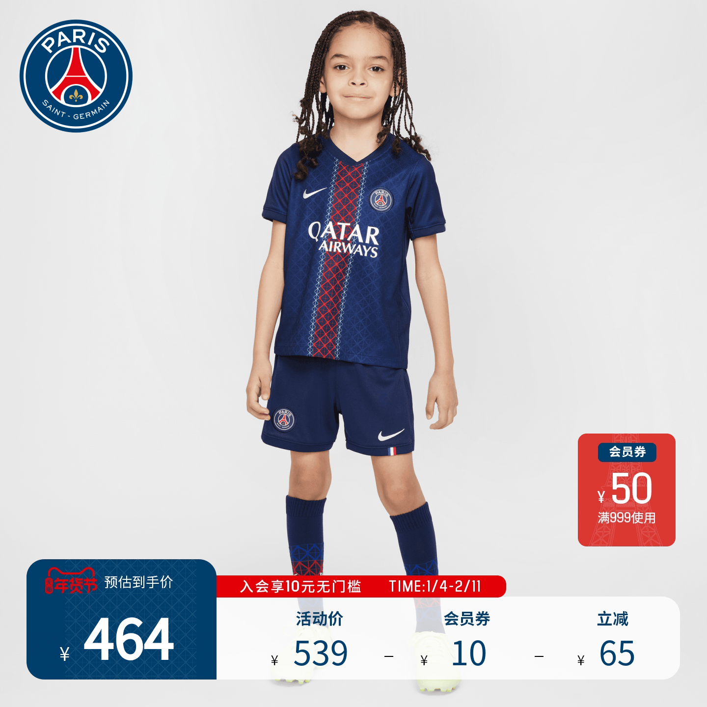 巴黎圣日耳曼25/26赛季主场幼童短袖短裤长袜足球速干训练服套装