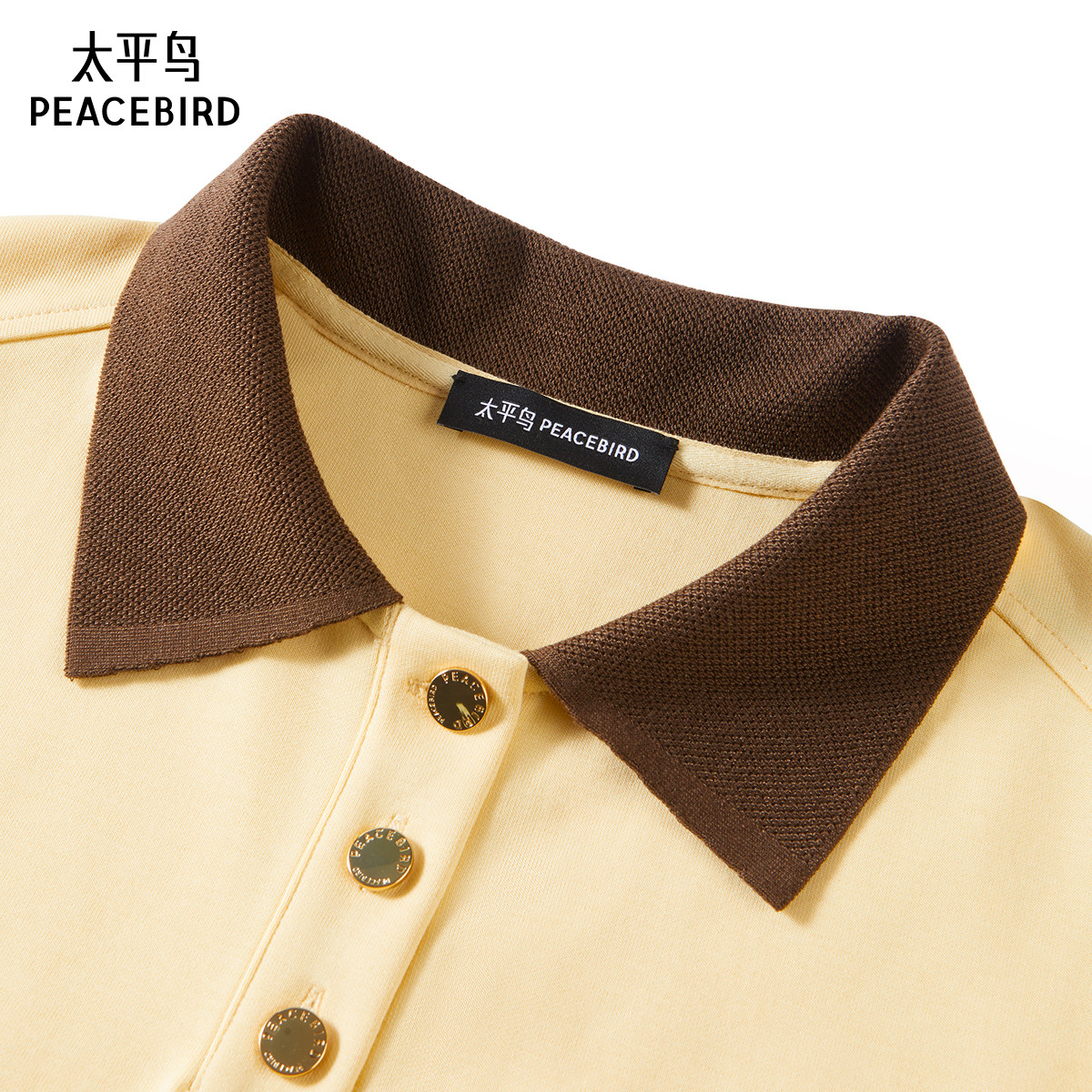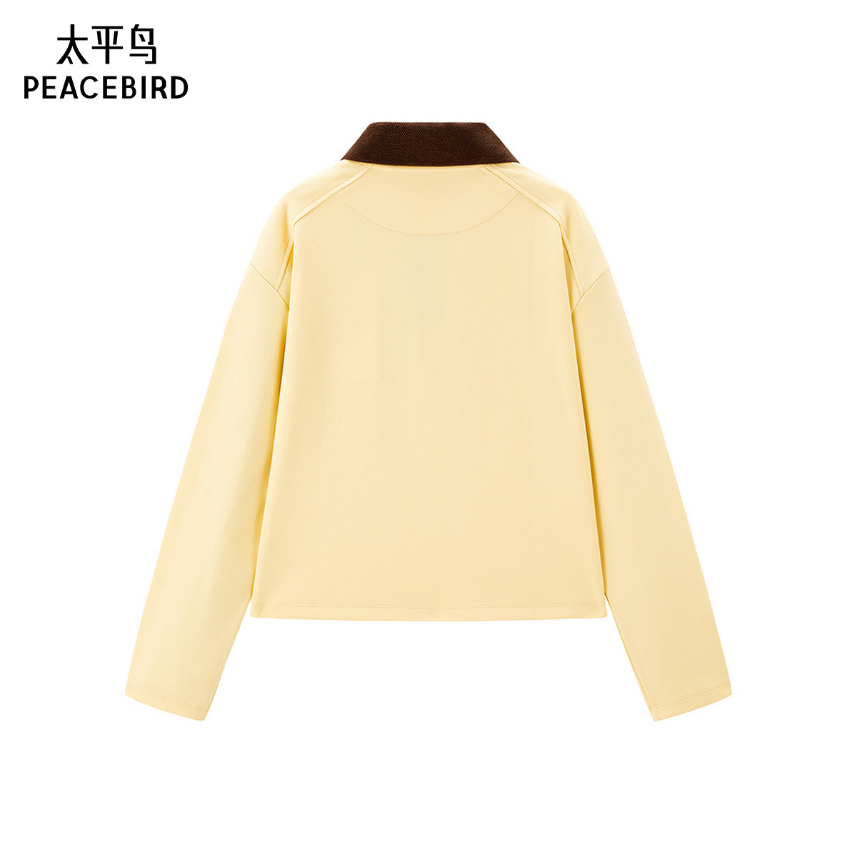 太平鸟女装2025年新款撞色polo领卫衣胸口图案女士外套A1CRF1133